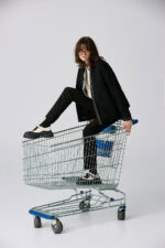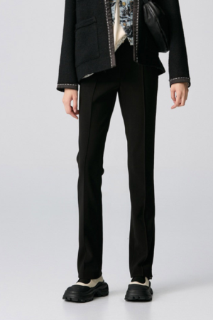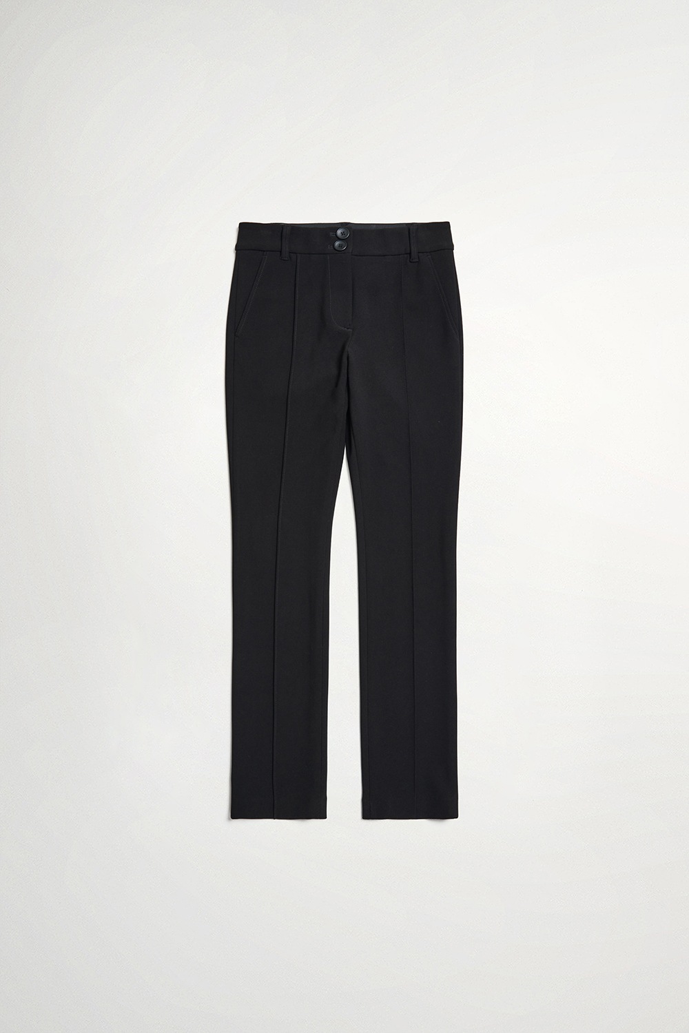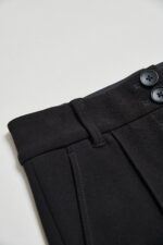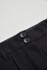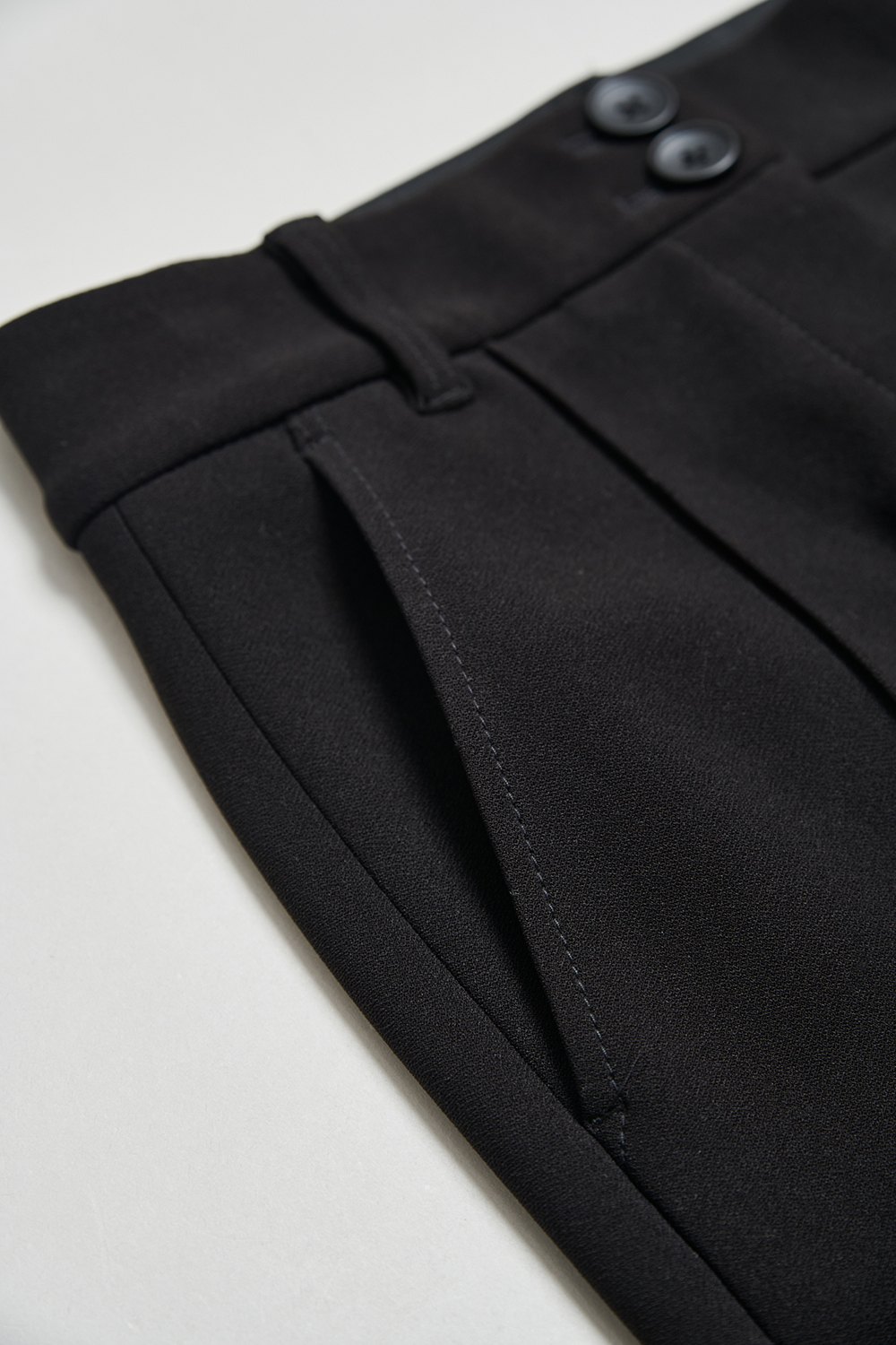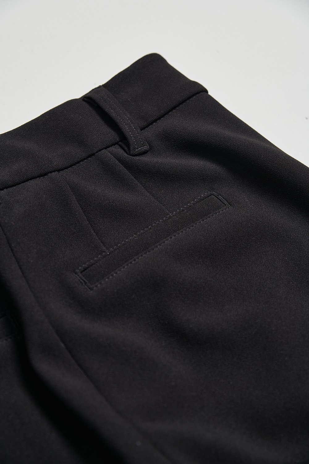 摩登冷酷前車褶彈力長褲 - 神祕純黑, 36