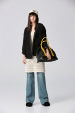 墨夜微光跳線落肩中長外套 - 神祕純黑, 38
