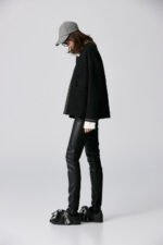 墨夜微光跳線落肩中長外套 - 神祕純黑, 36