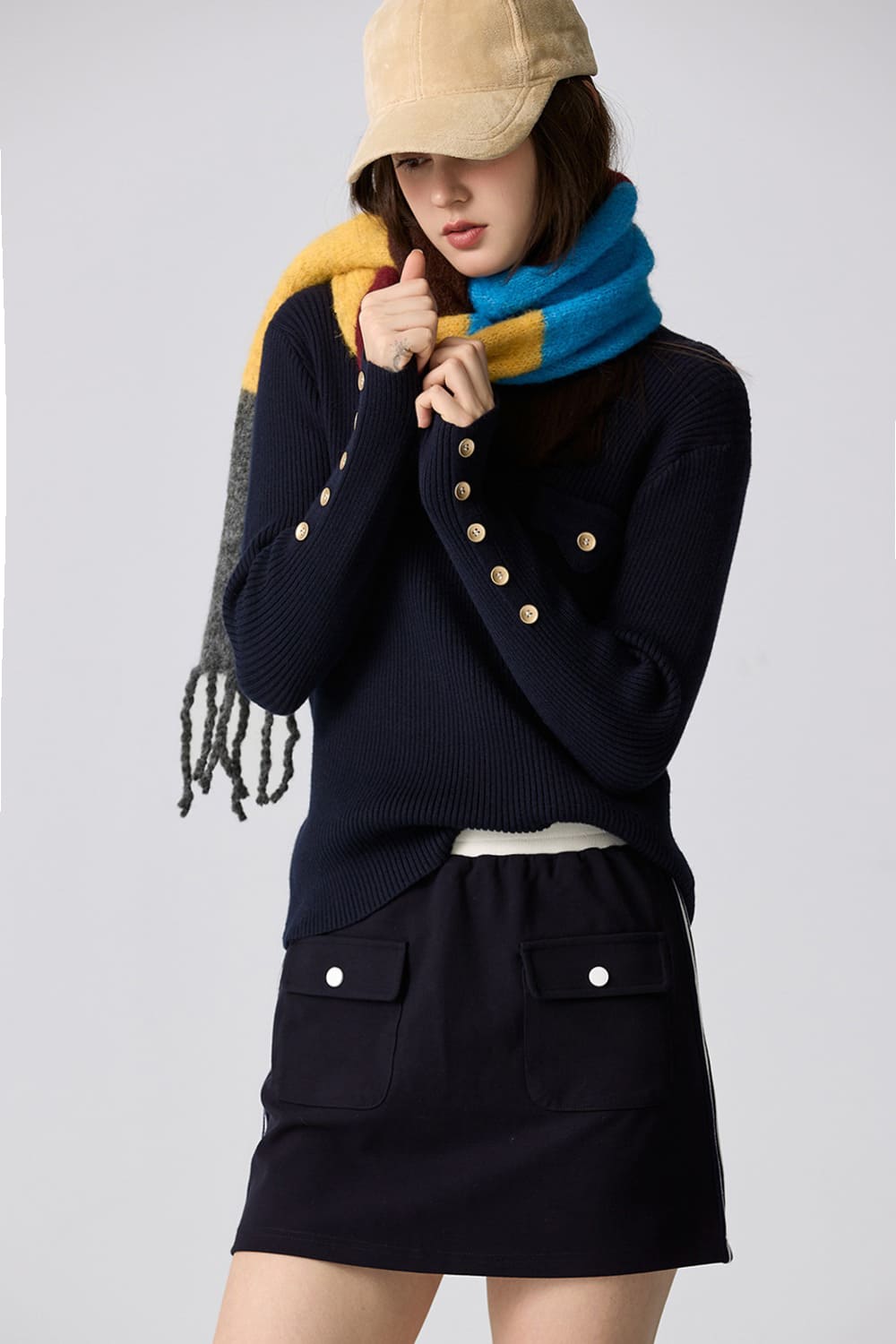 袖口的排列鈕扣設計讓整體感覺高雅時尚,領口高度保暖又不會勒脖子!