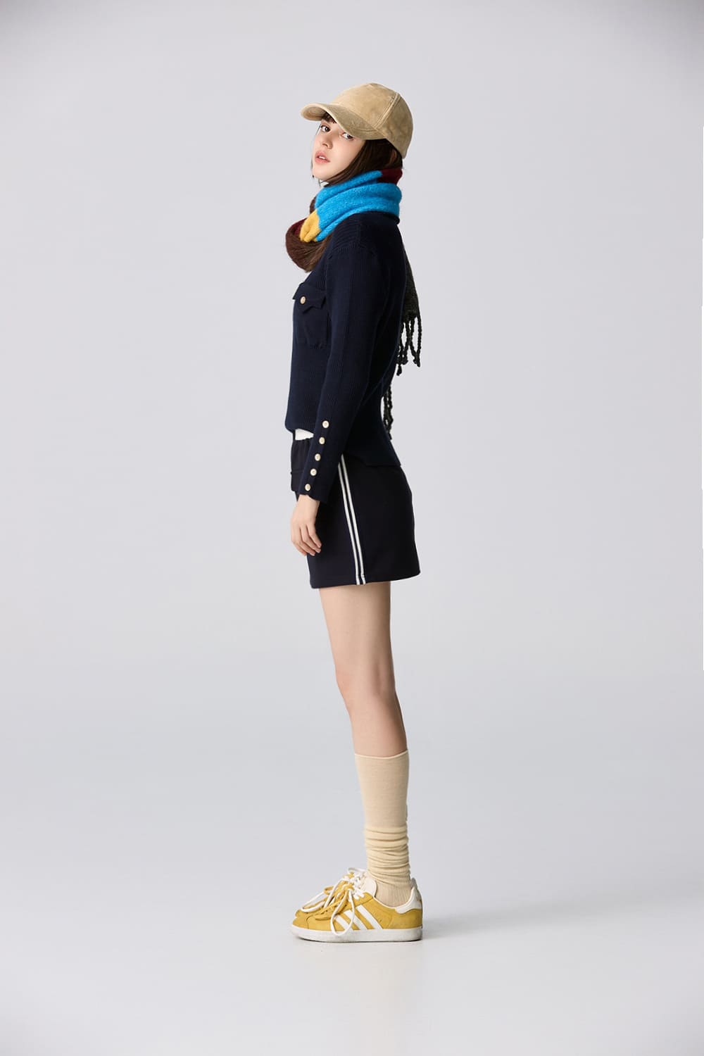藏藍色厚針織上衣..金色扣子點綴 更顯得 藏藍色的美