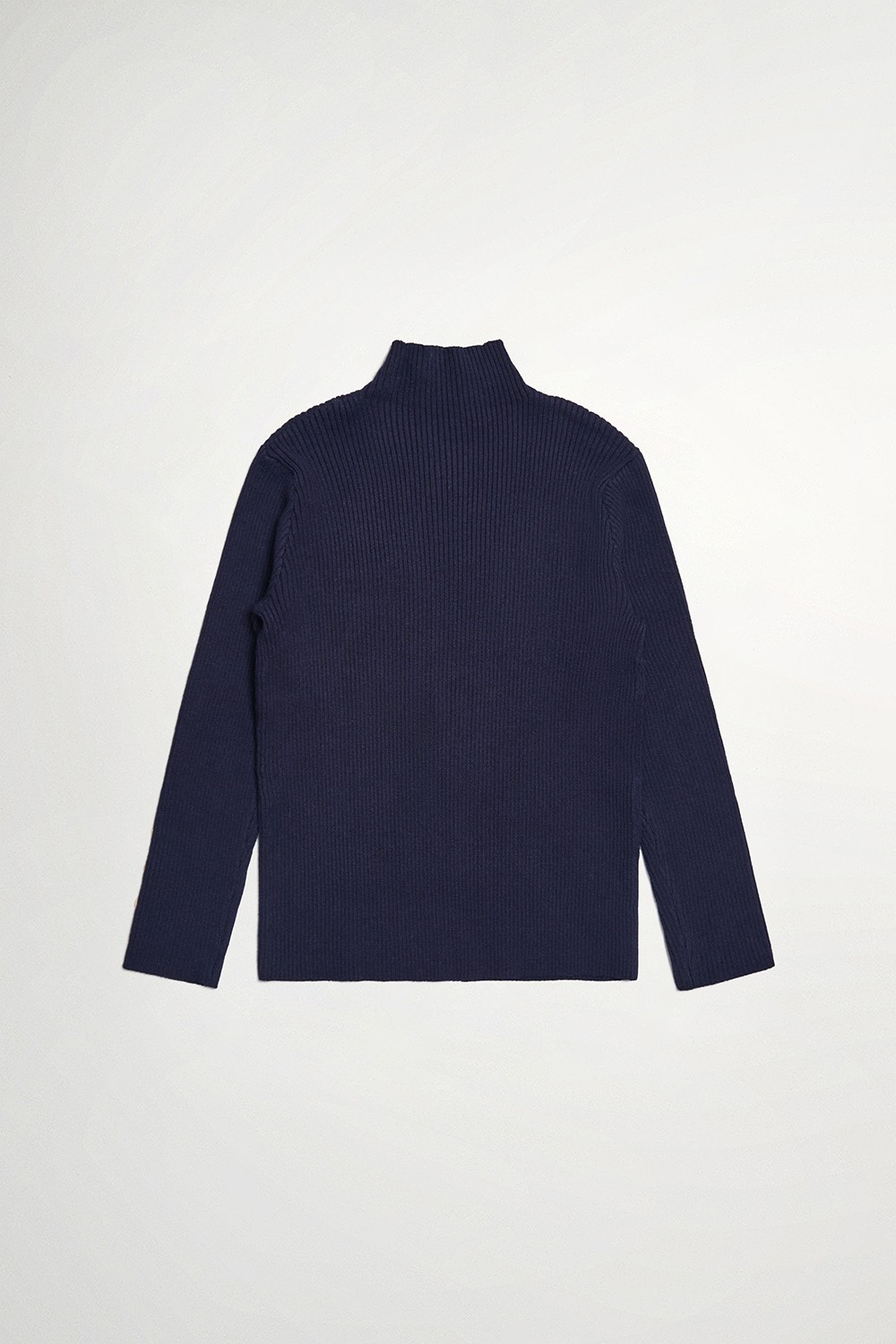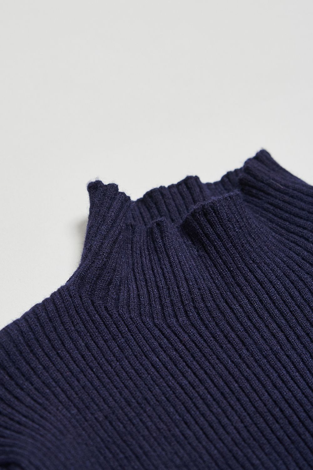 暮色藍調小立領坑條針織上衣 - 深邃藏藍, 36
