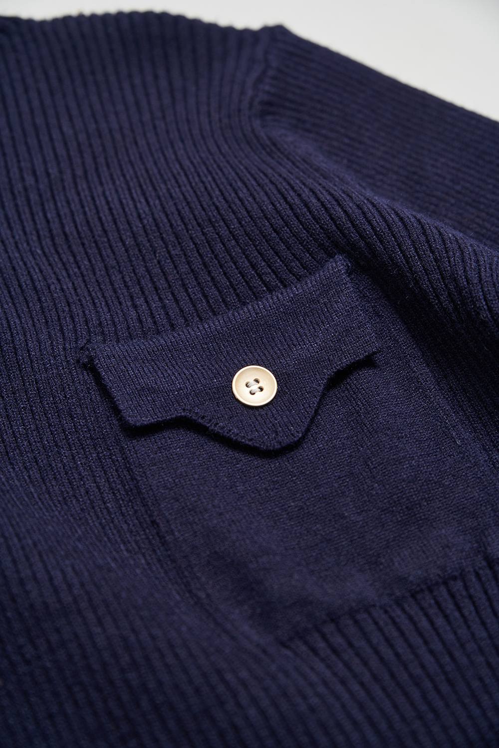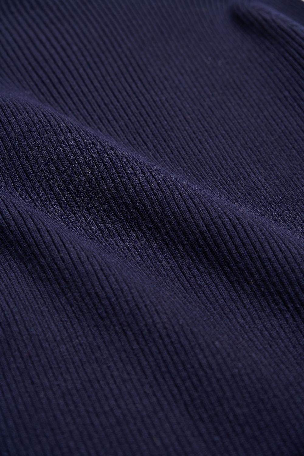 暮色藍調小立領坑條針織上衣 - 深邃藏藍, 40