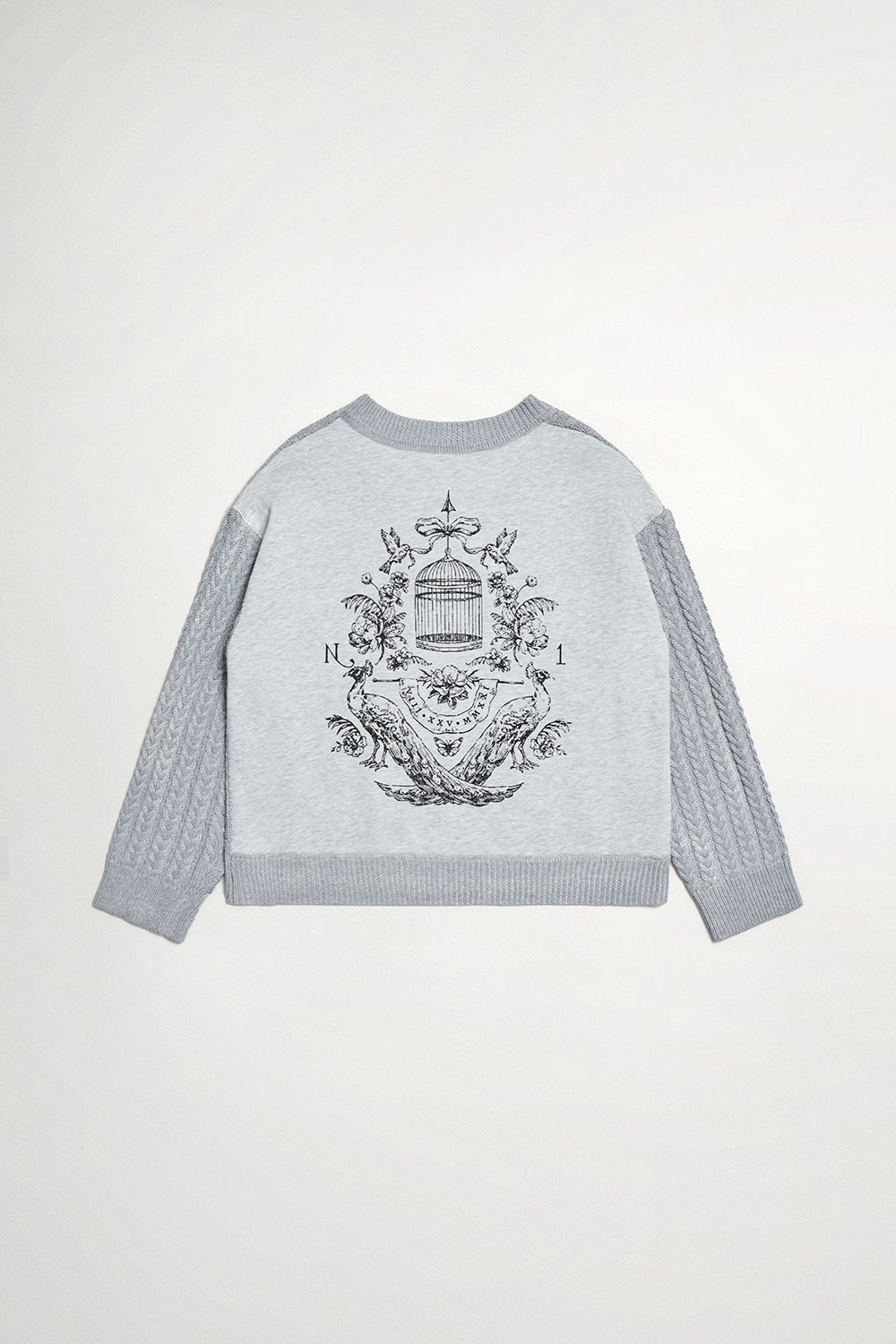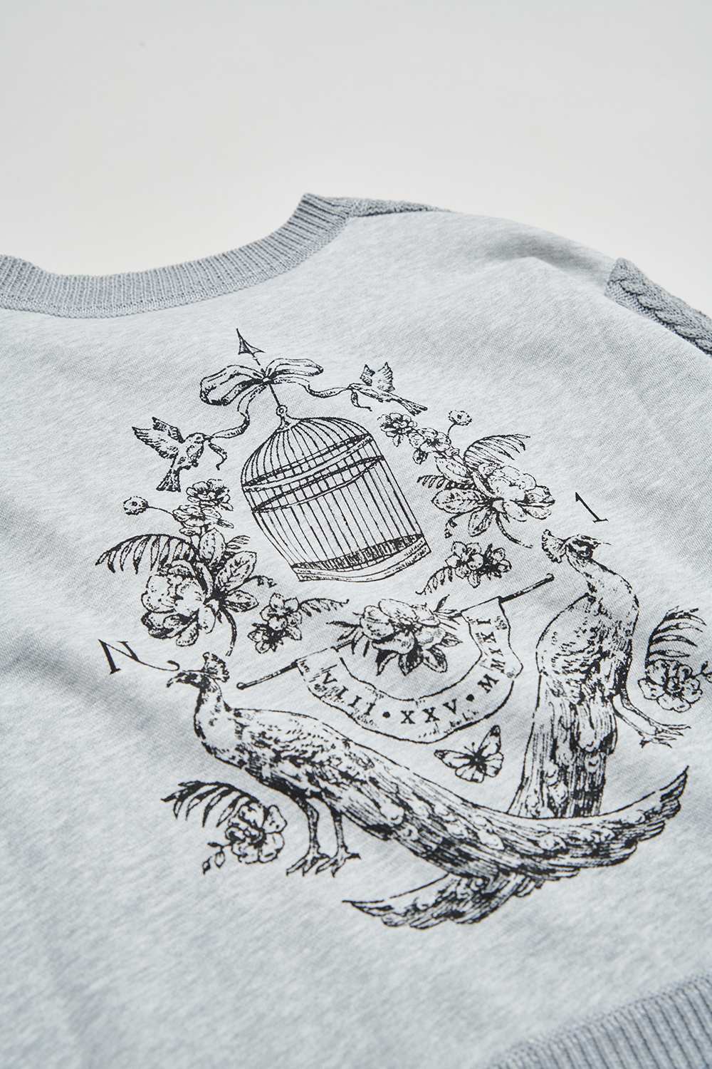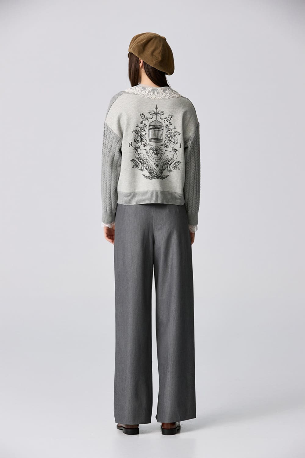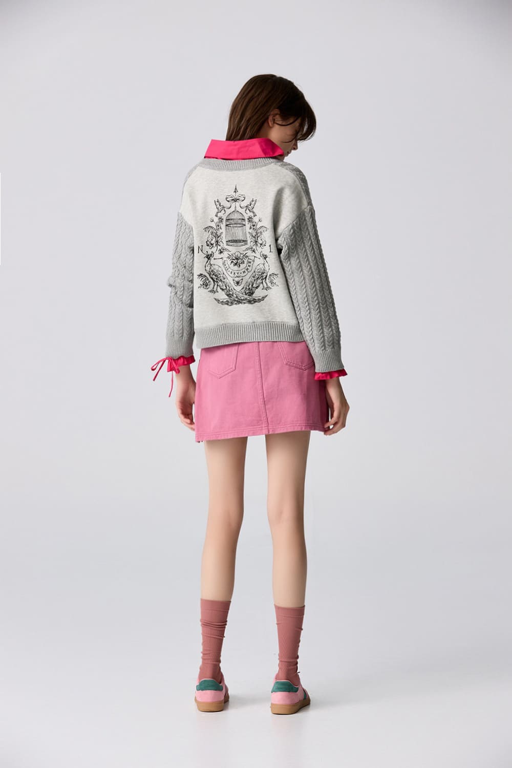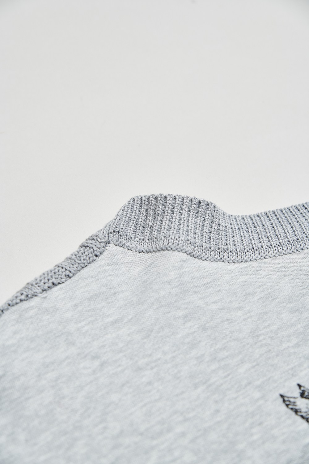 細膩低調後印花異材質拼接上衣 - 沉穩霧灰, 40