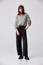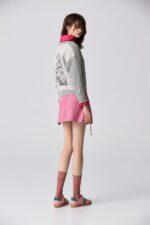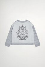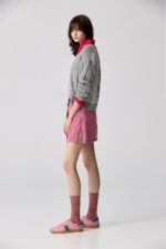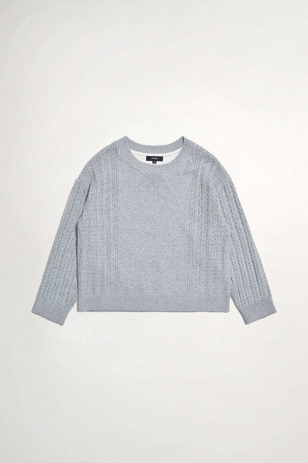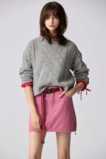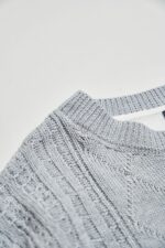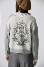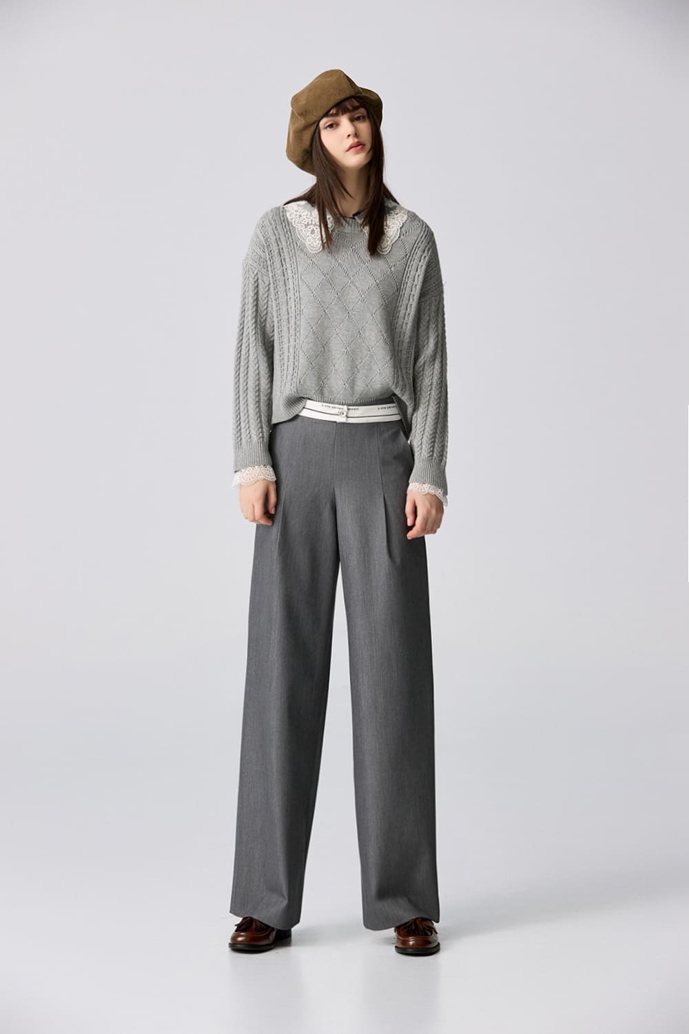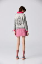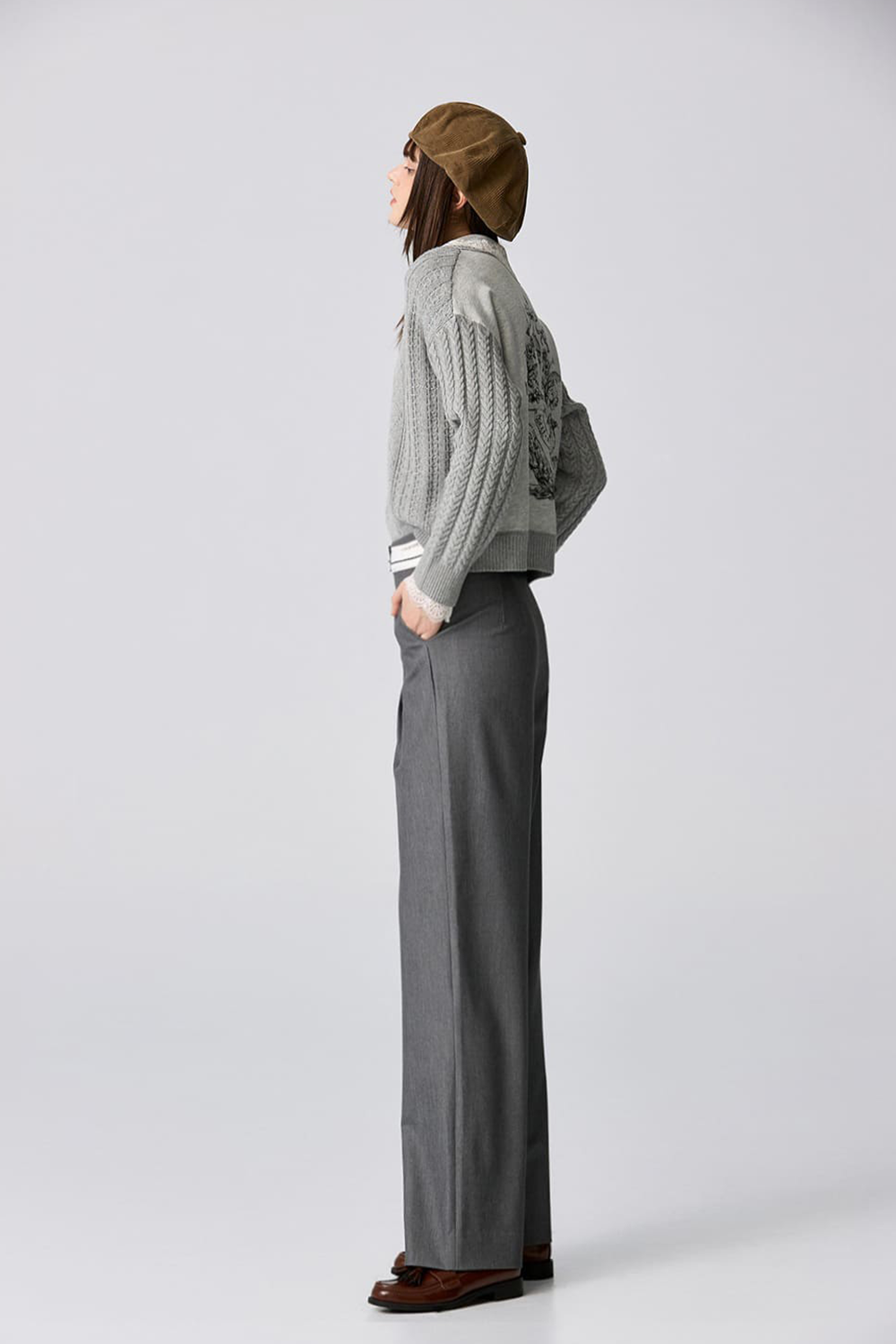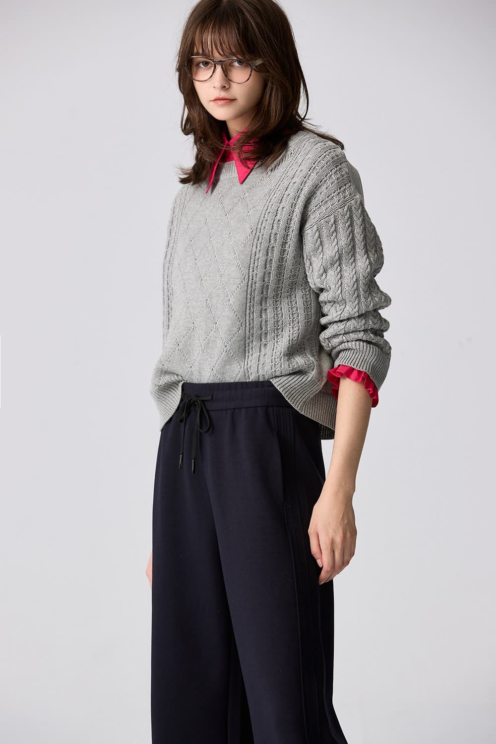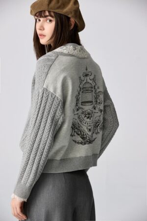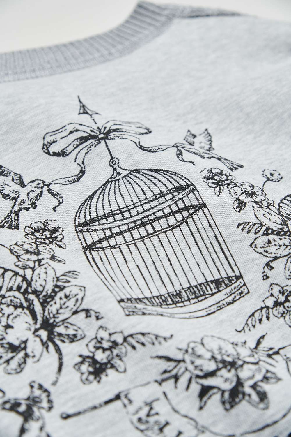 細膩低調後印花異材質拼接上衣 - 沉穩霧灰, 40