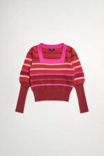 甜美浪漫方領公主袖針織上衣