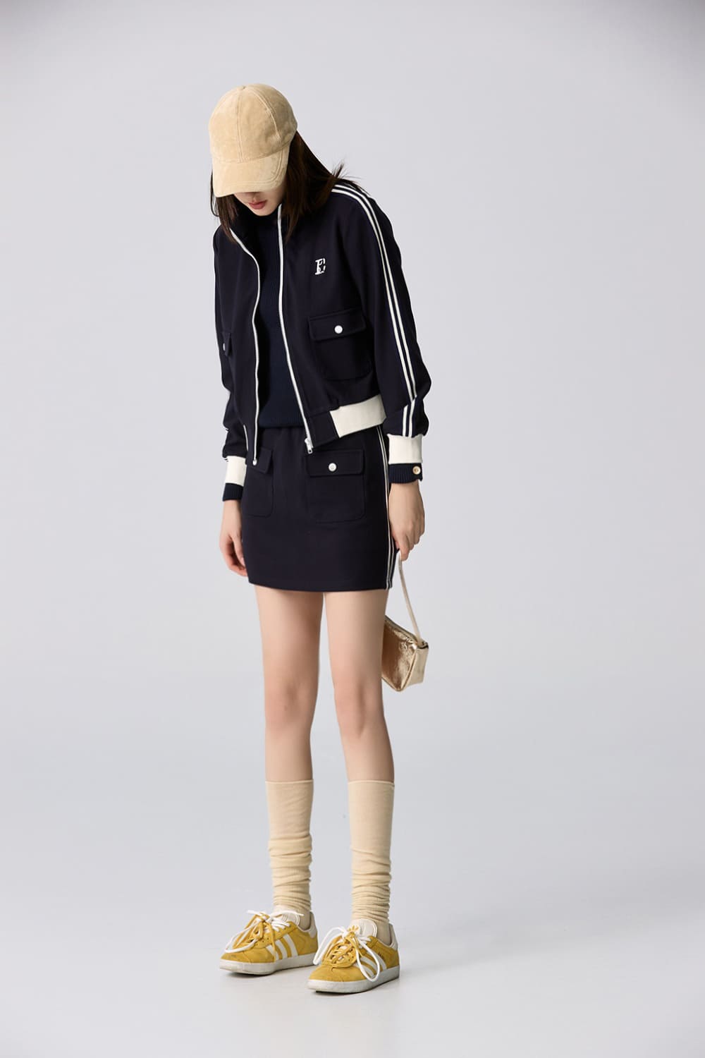 夜空深藍配色休閒棒球外套 - 深邃藏藍, 36