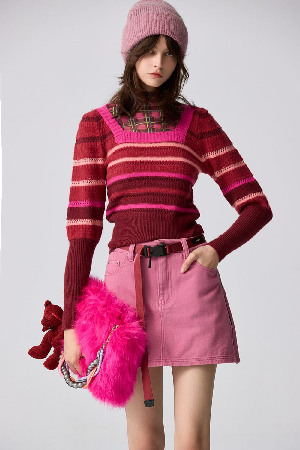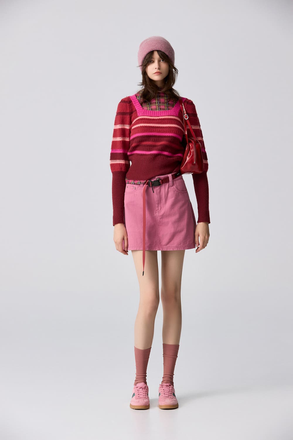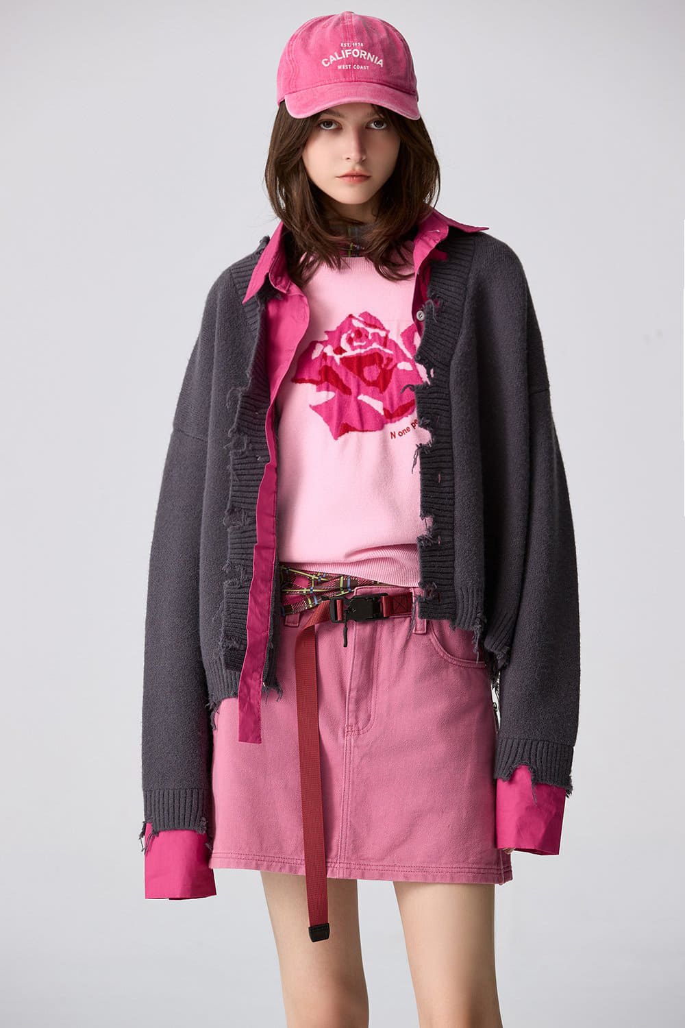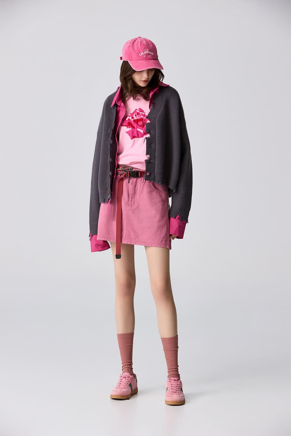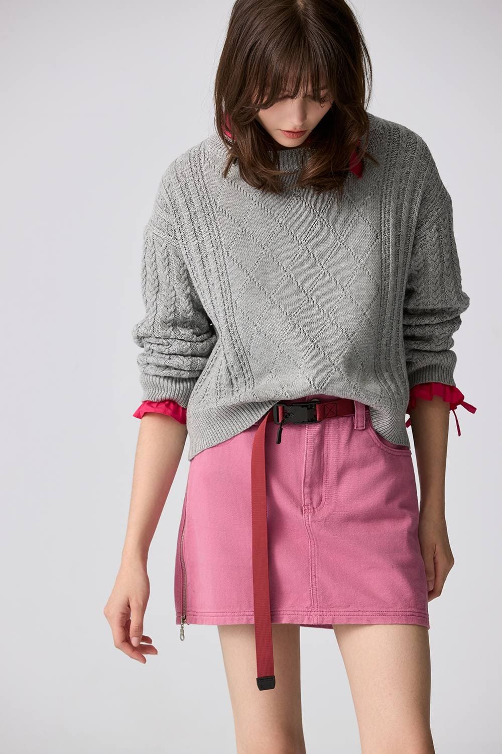 嬌嫩柔美側邊拉鍊短裙 - 胭脂桃紅, 38