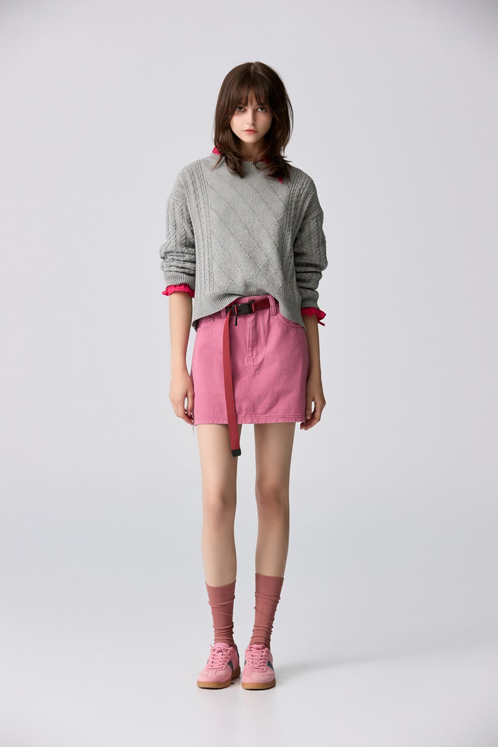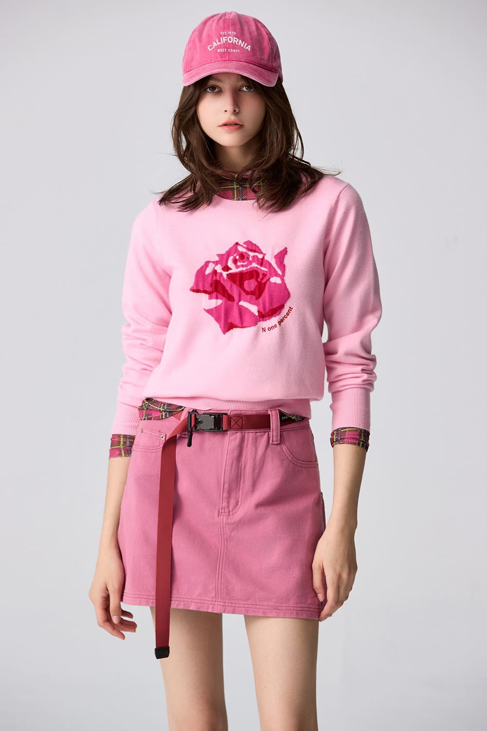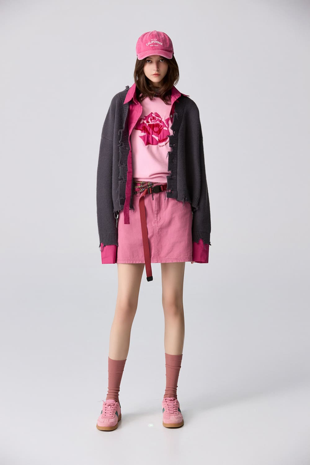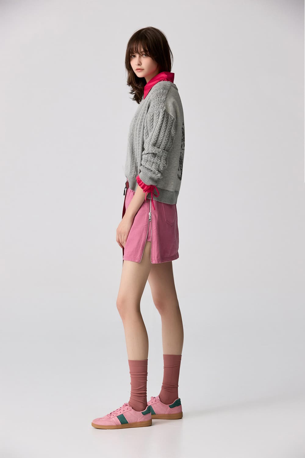 嬌嫩柔美側邊拉鍊短裙 - 胭脂桃紅, 38