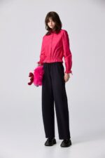 甜蜜溫暖綁帶收腰襯衫 - 胭脂桃紅, 40