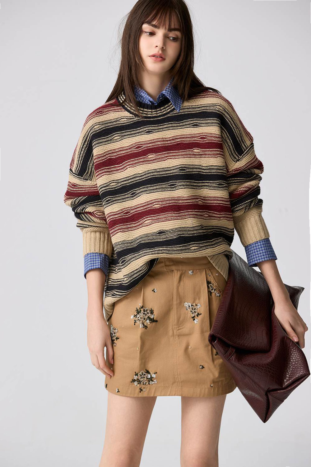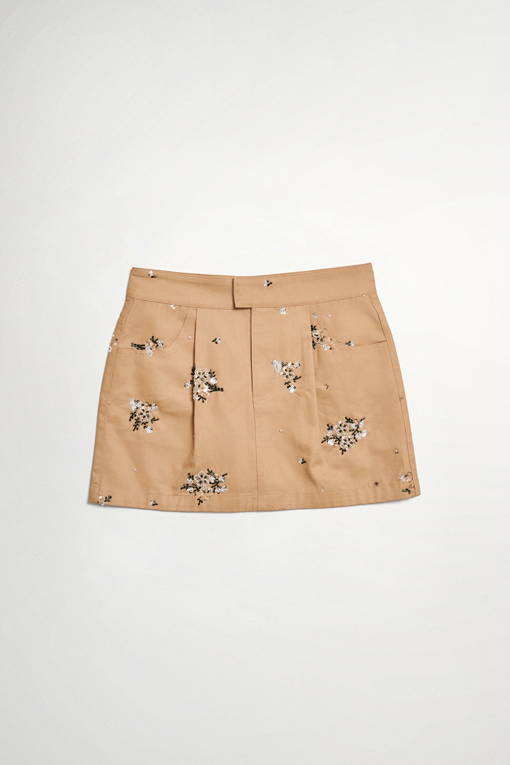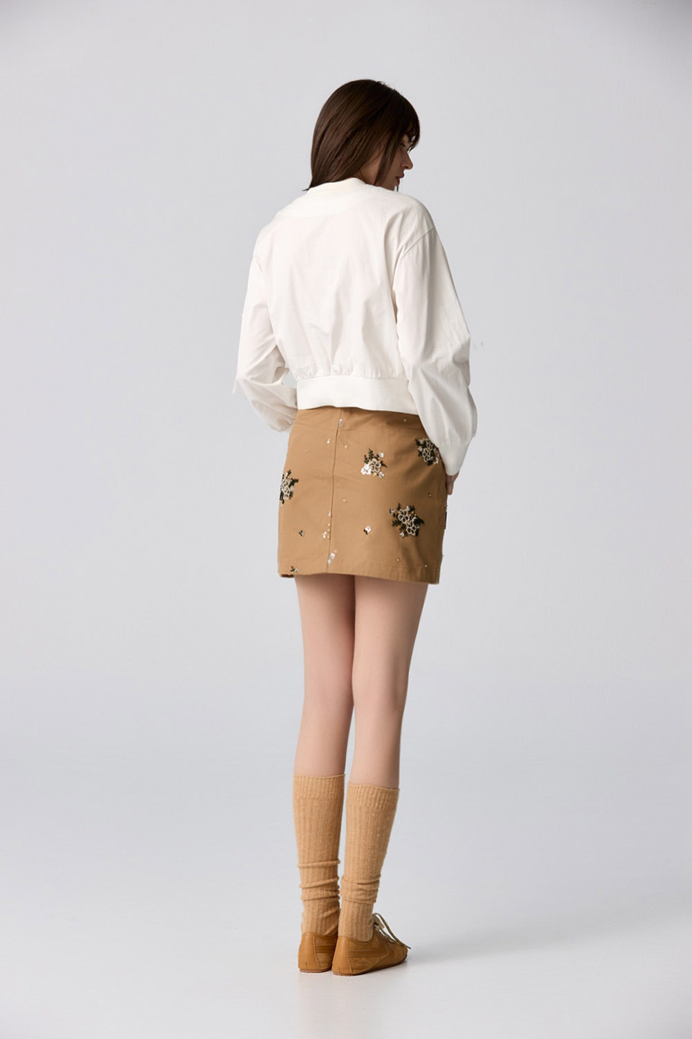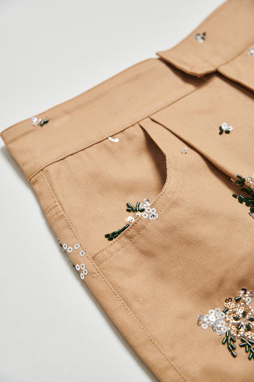 低調時尚亮片繡花短裙 - 可可卡其, 40
