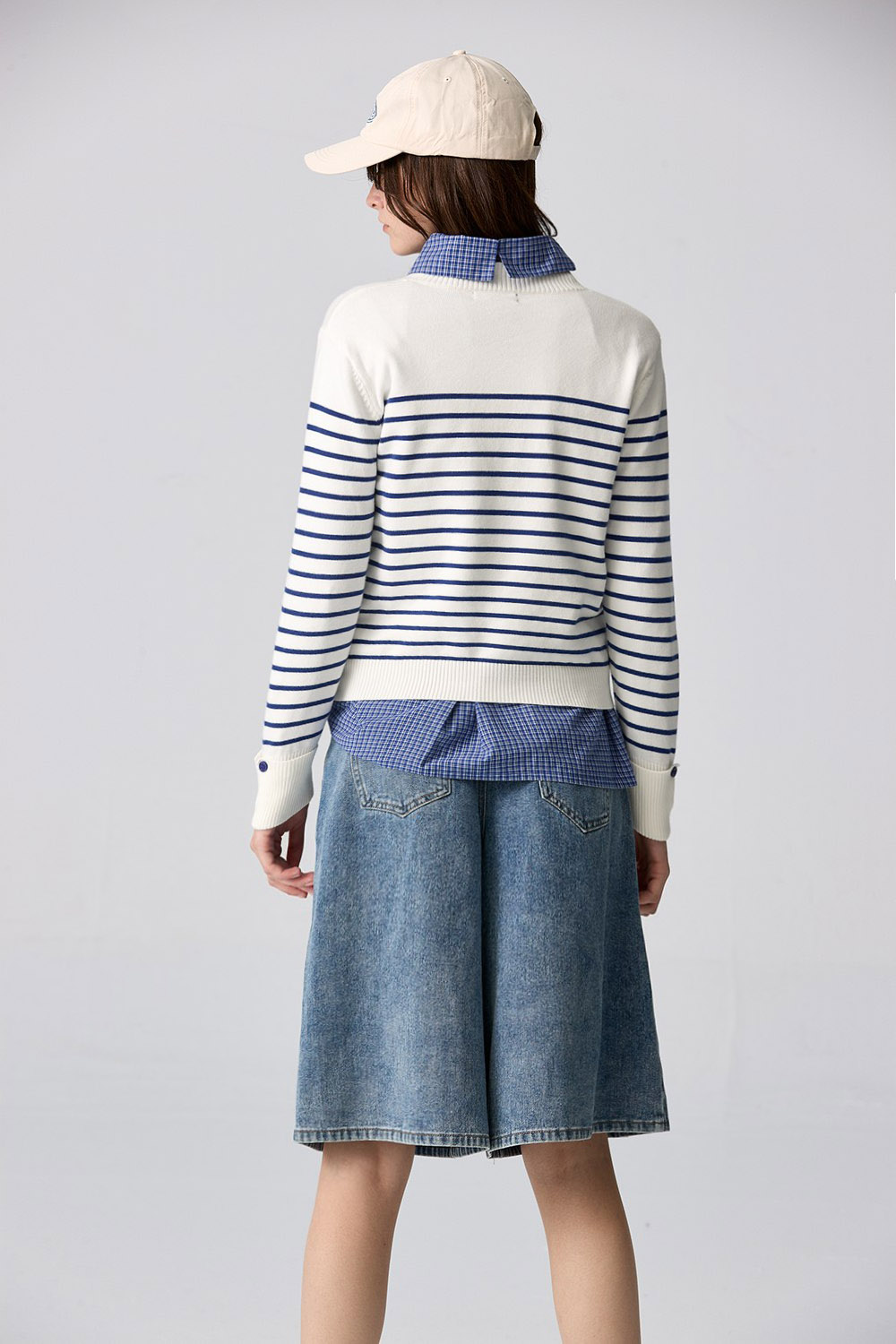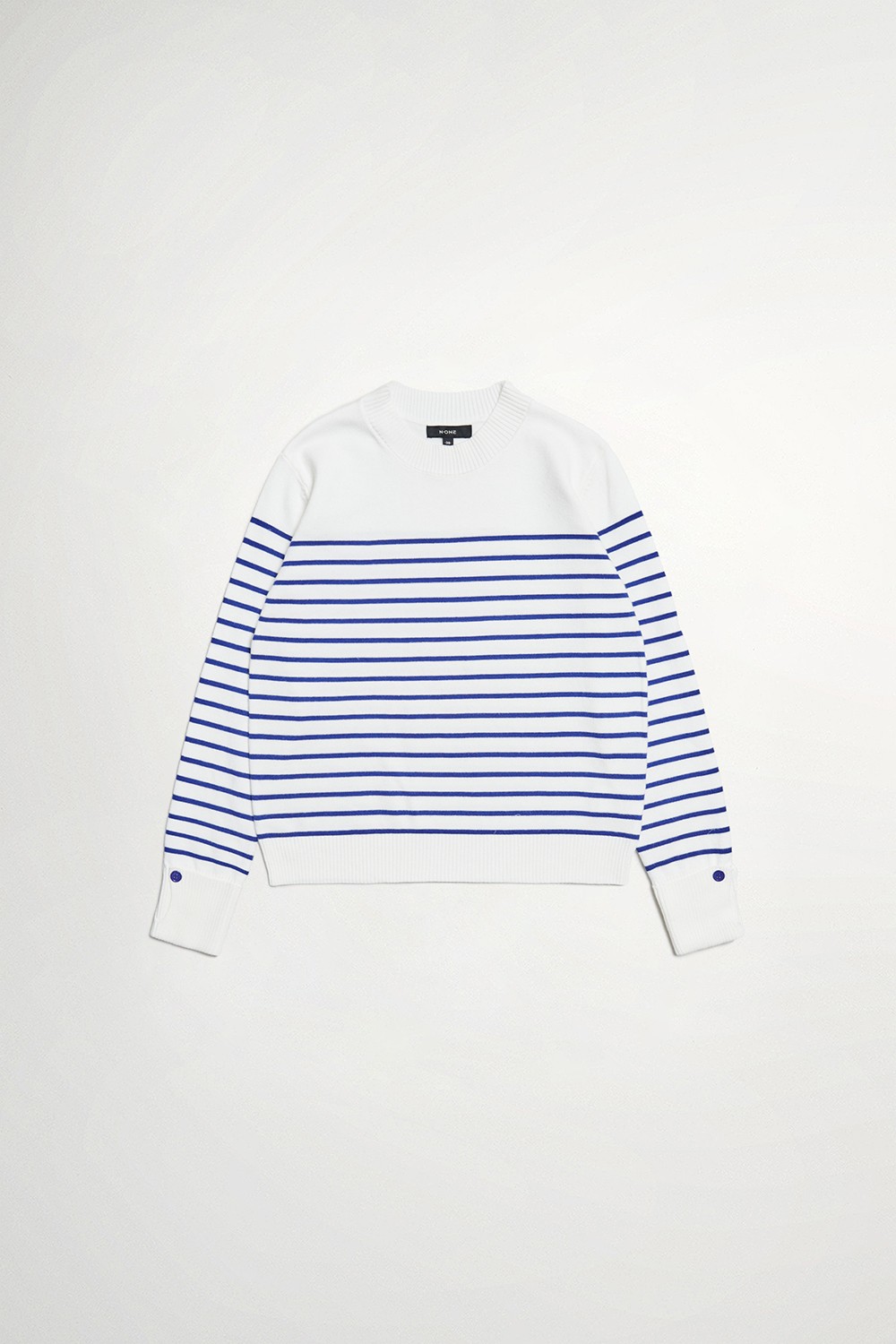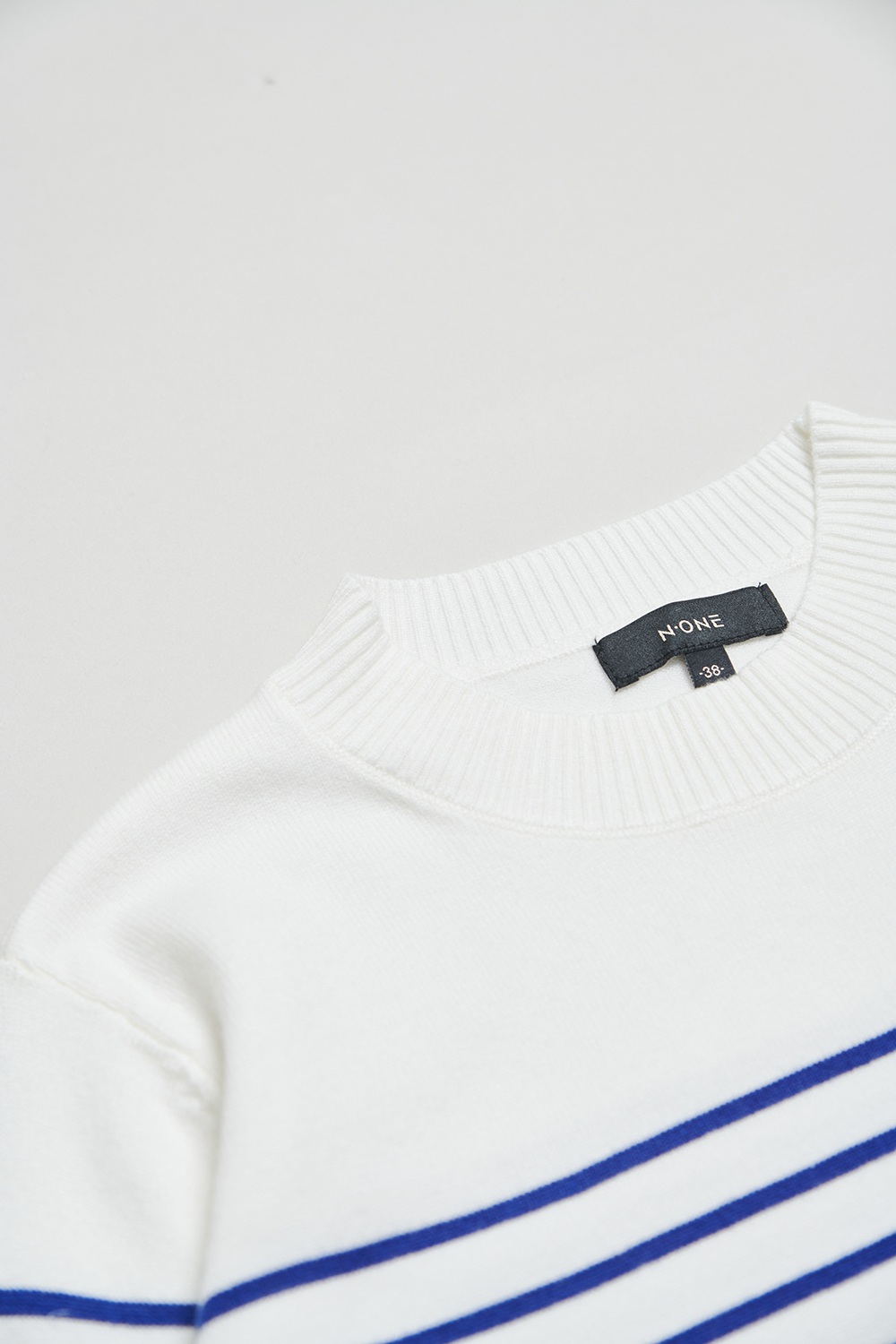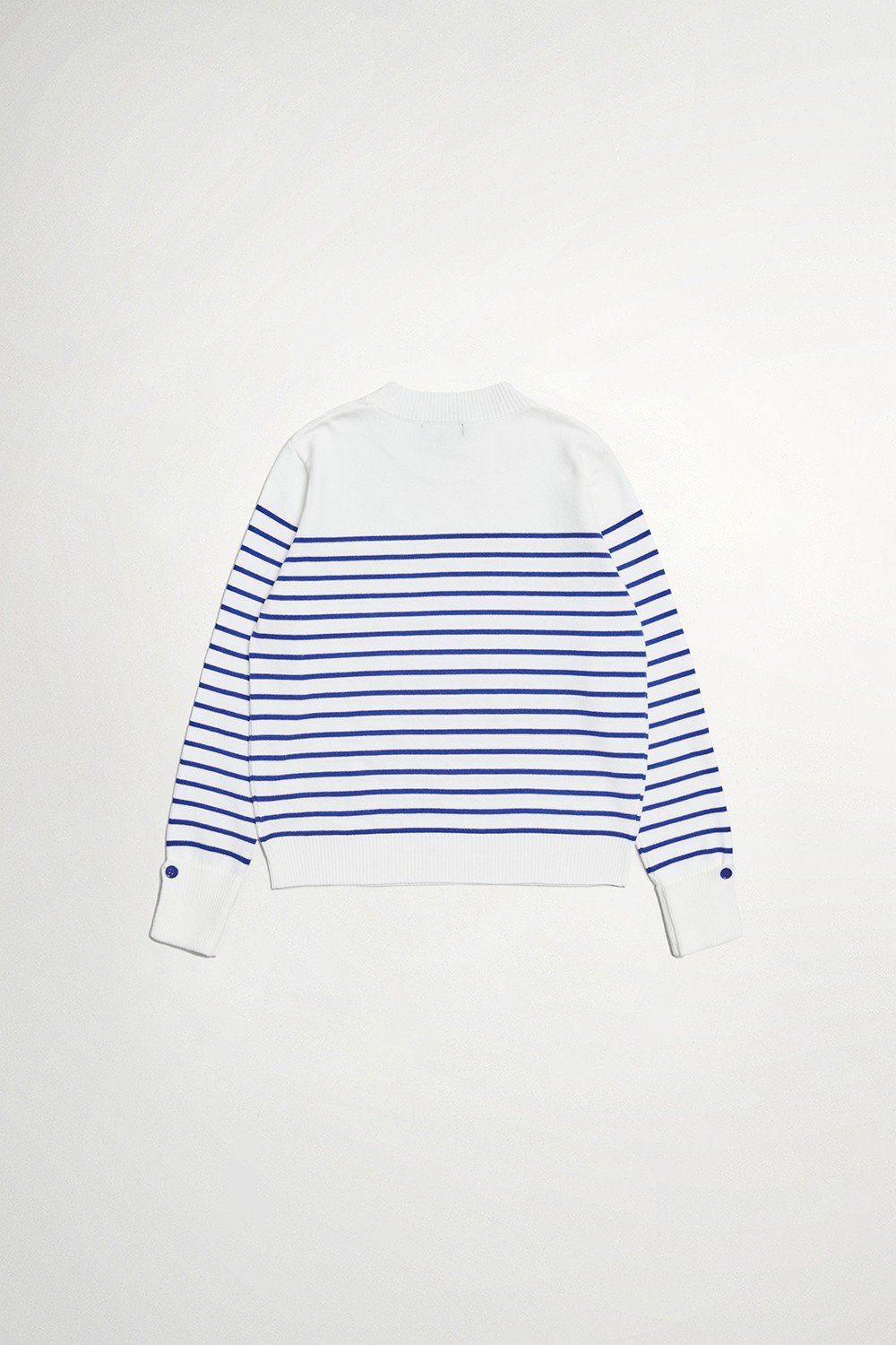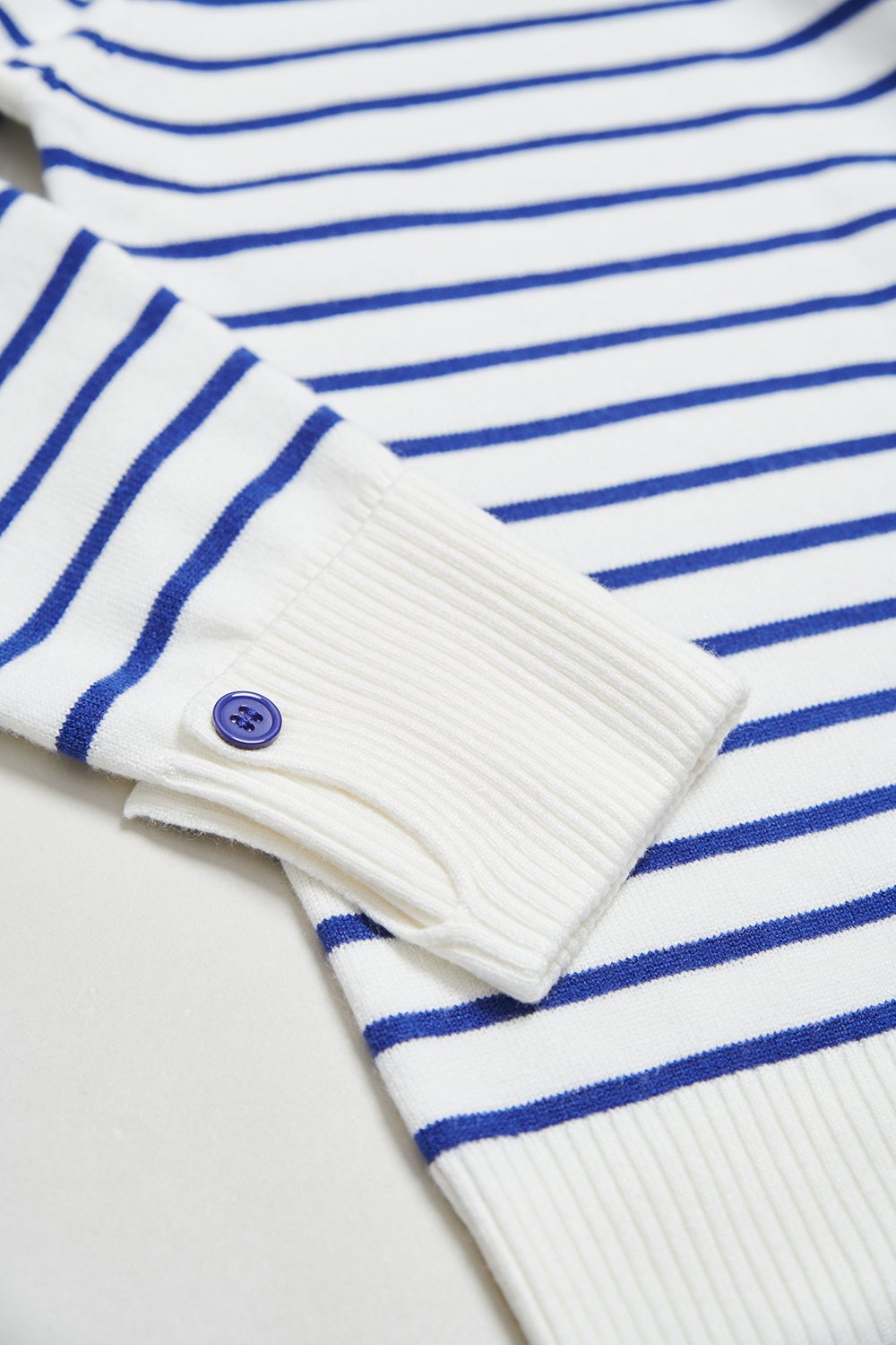 海洋氛圍配色條針織上衣 - 藍白條紋, 36