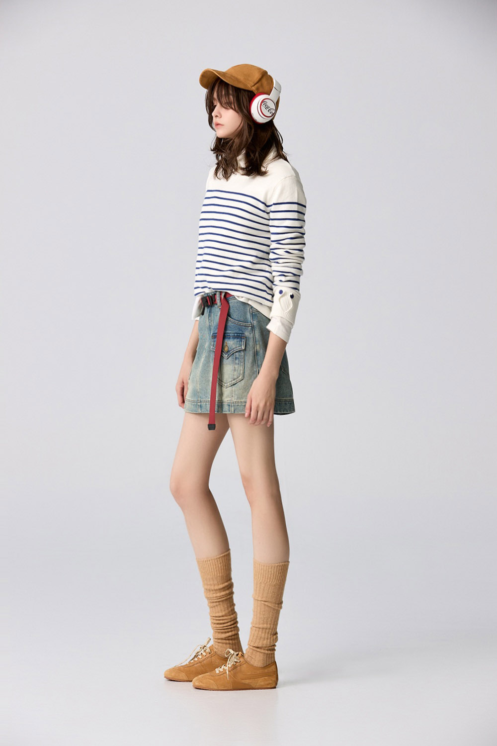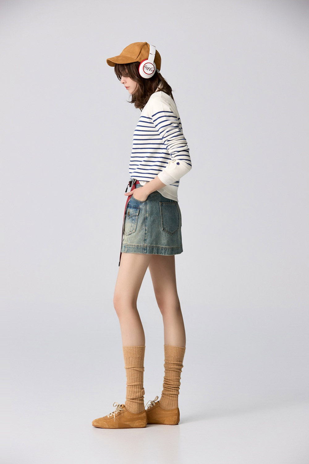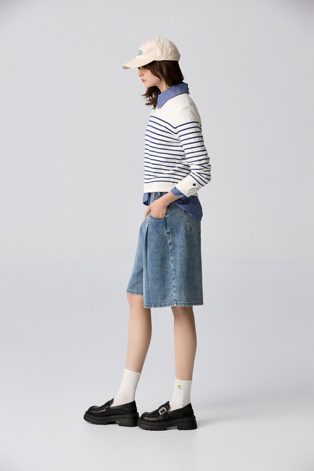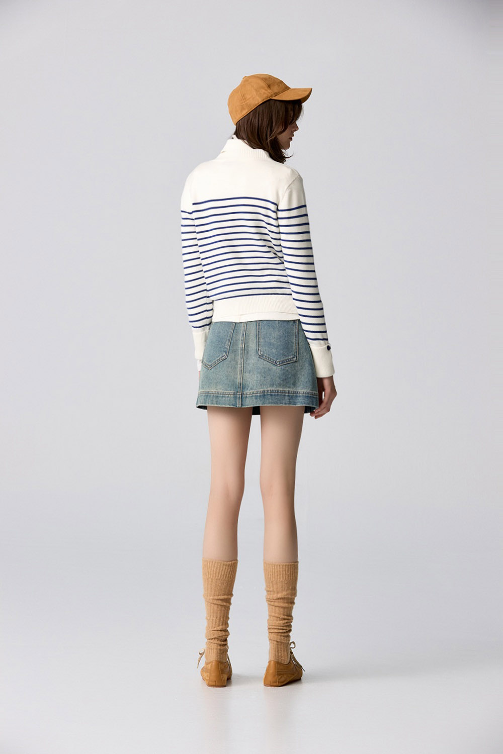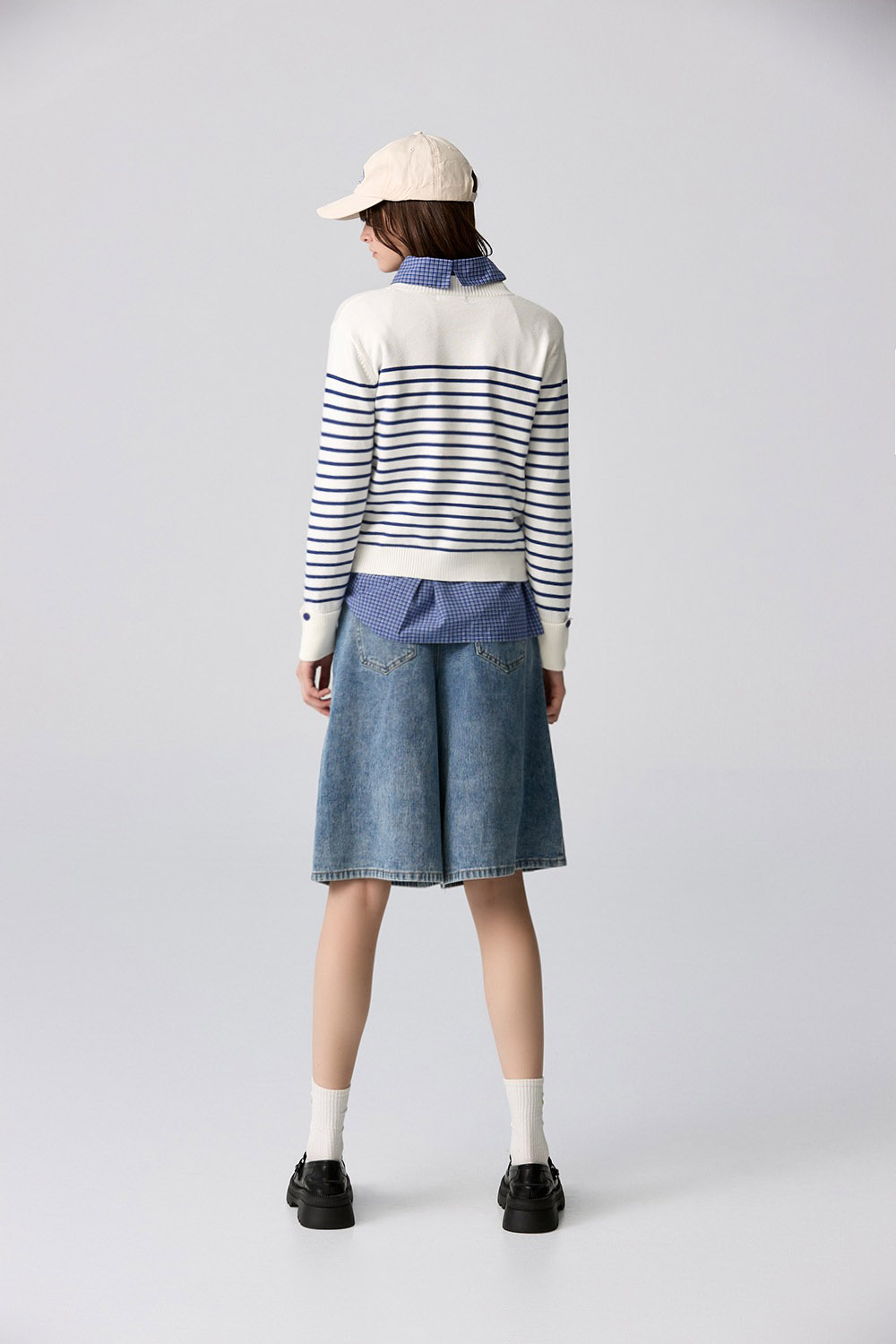 海洋氛圍配色條針織上衣 - 藍白條紋, 36