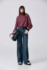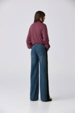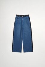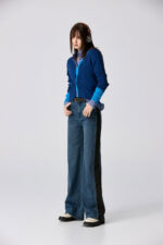夜藍神秘雙色牛仔寬褲 - 深邃藏藍, 40