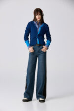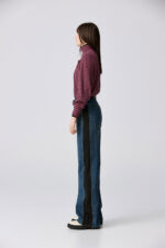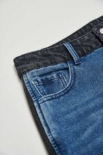 夜藍神秘雙色牛仔寬褲 - 深邃藏藍, 38