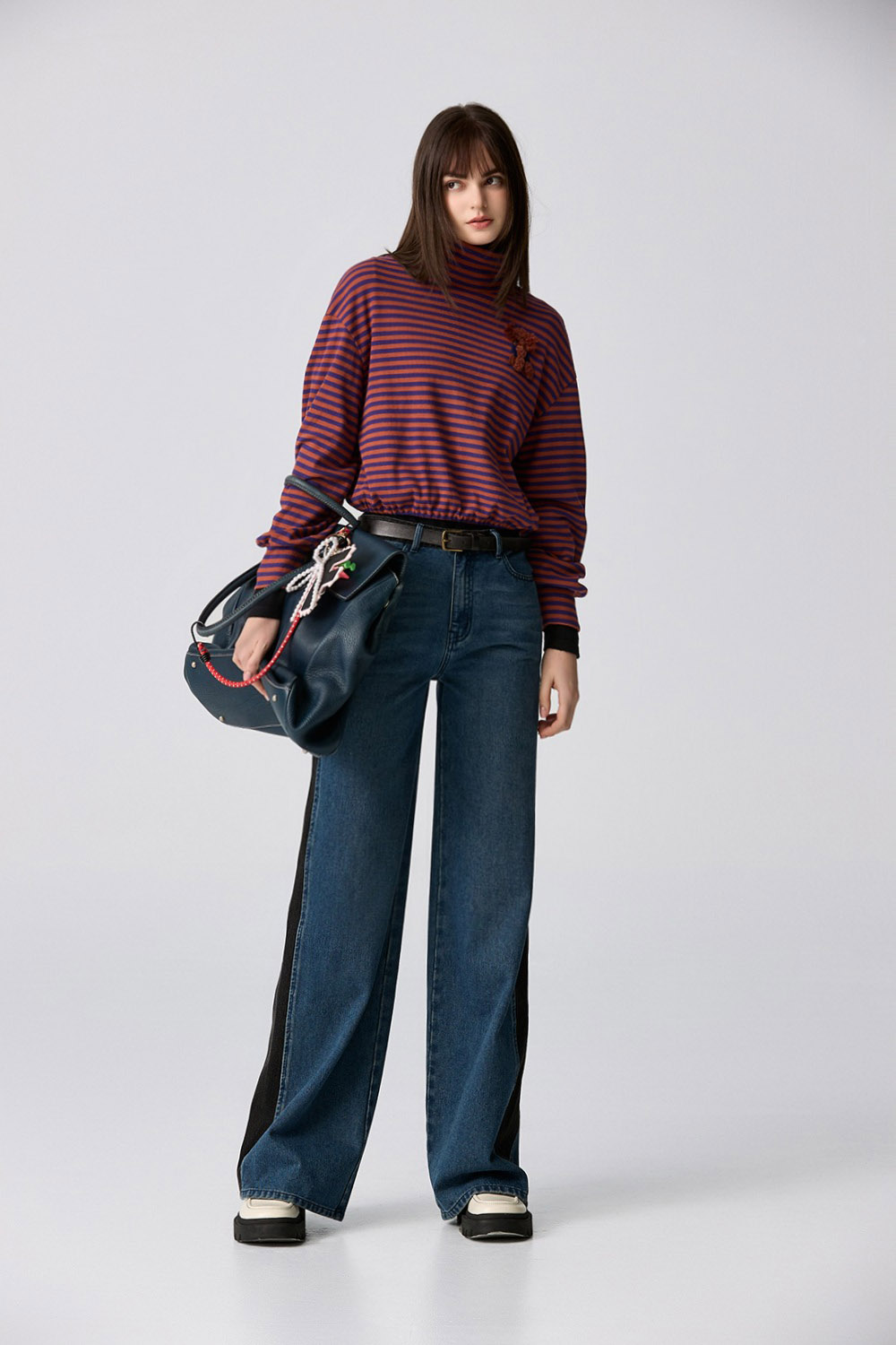 夜藍神秘雙色牛仔寬褲 - 深邃藏藍, 40