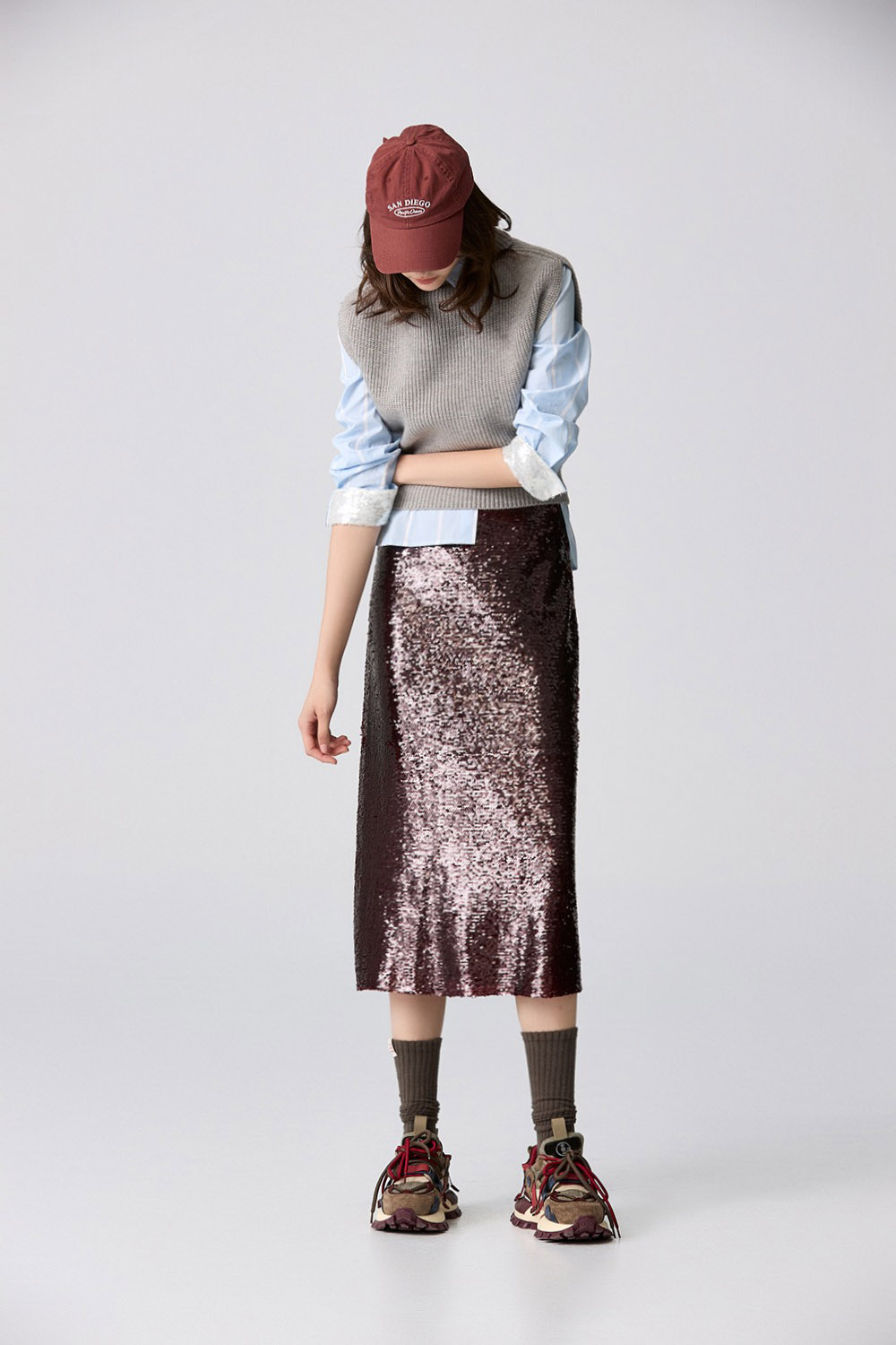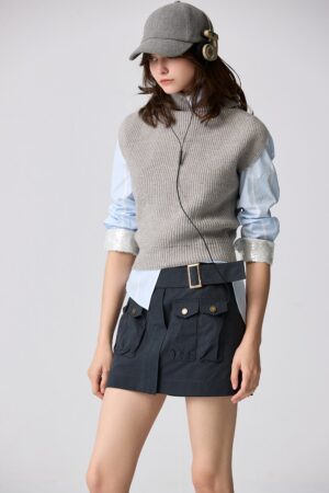 淡影輕灰高領針織背心 - 沉穩霧灰, 36