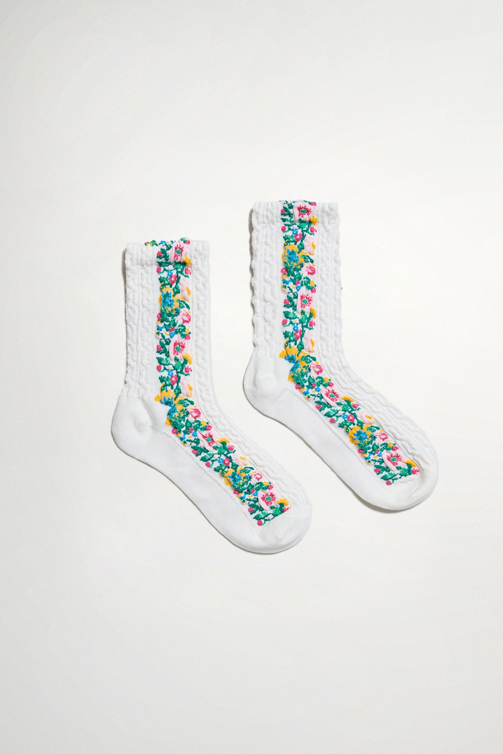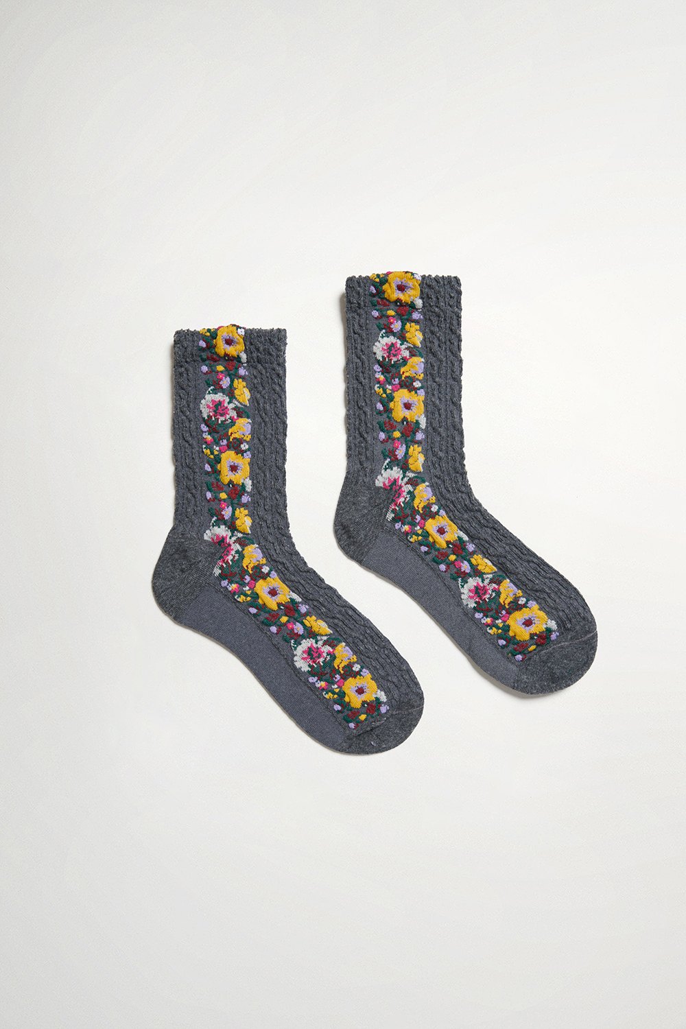 復古秘密花園緹花中筒襪 - 深邃藏藍