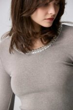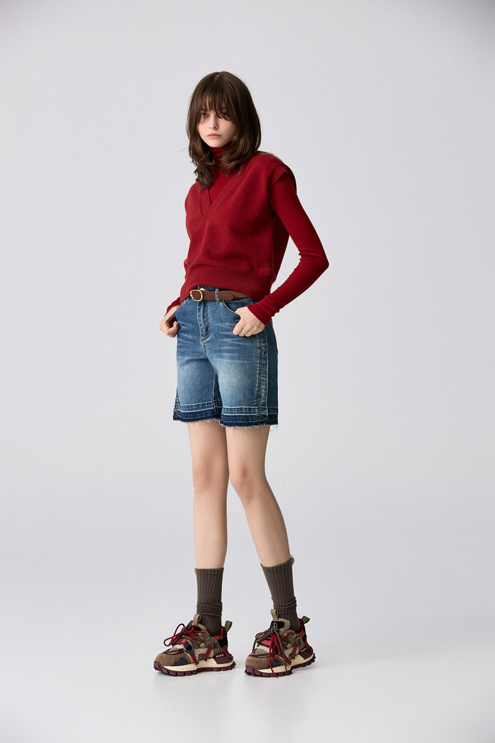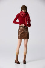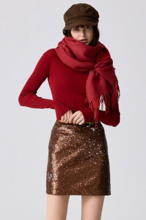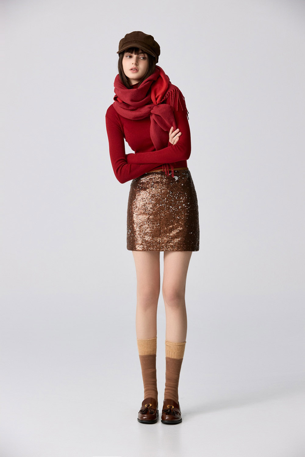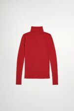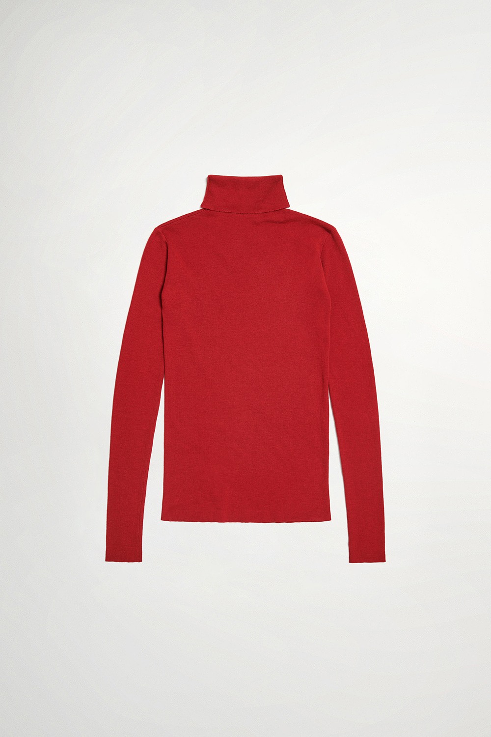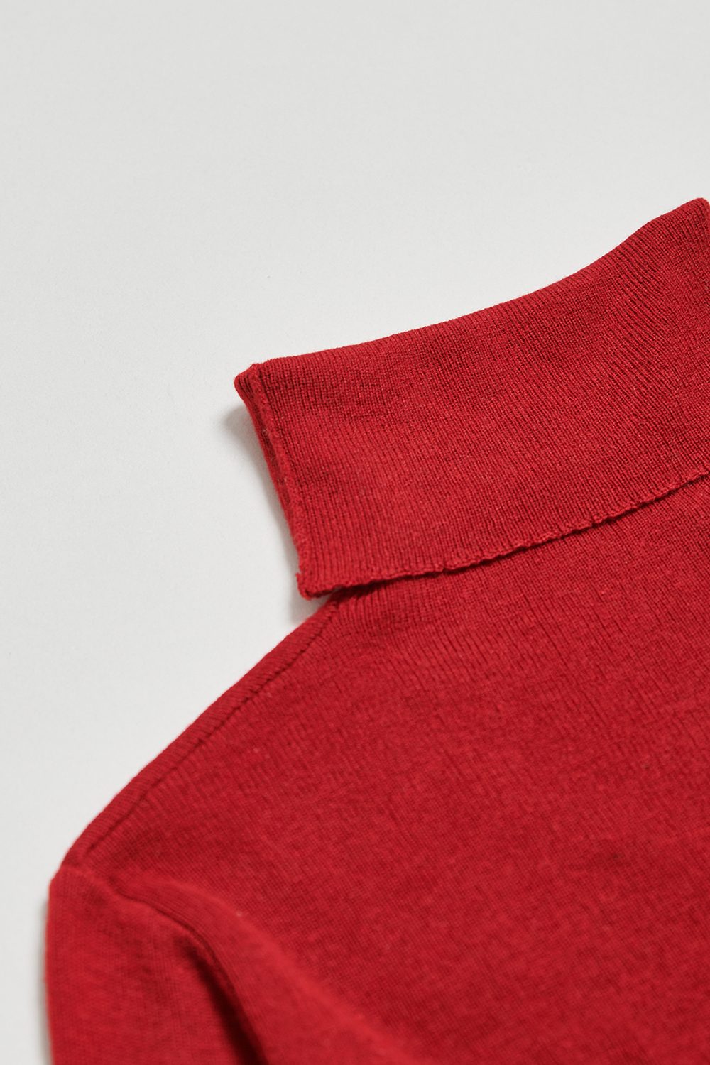 艷美迷人素色高領針織上衣 - 耀眼赤紅, 36