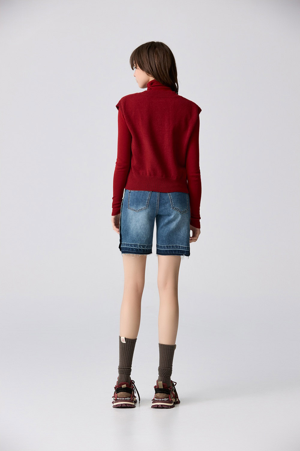 艷美迷人素色高領針織上衣 - 耀眼赤紅, 38