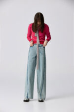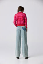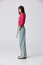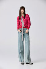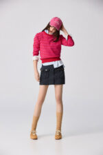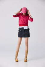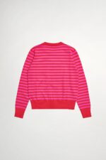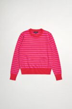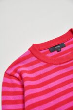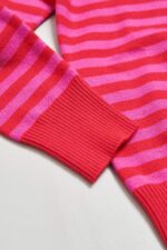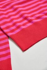 桃柔粉潤雙色配條針織上衣 - 胭脂桃紅, 36