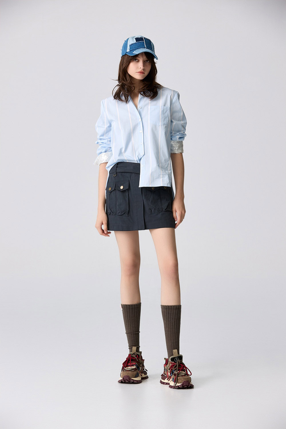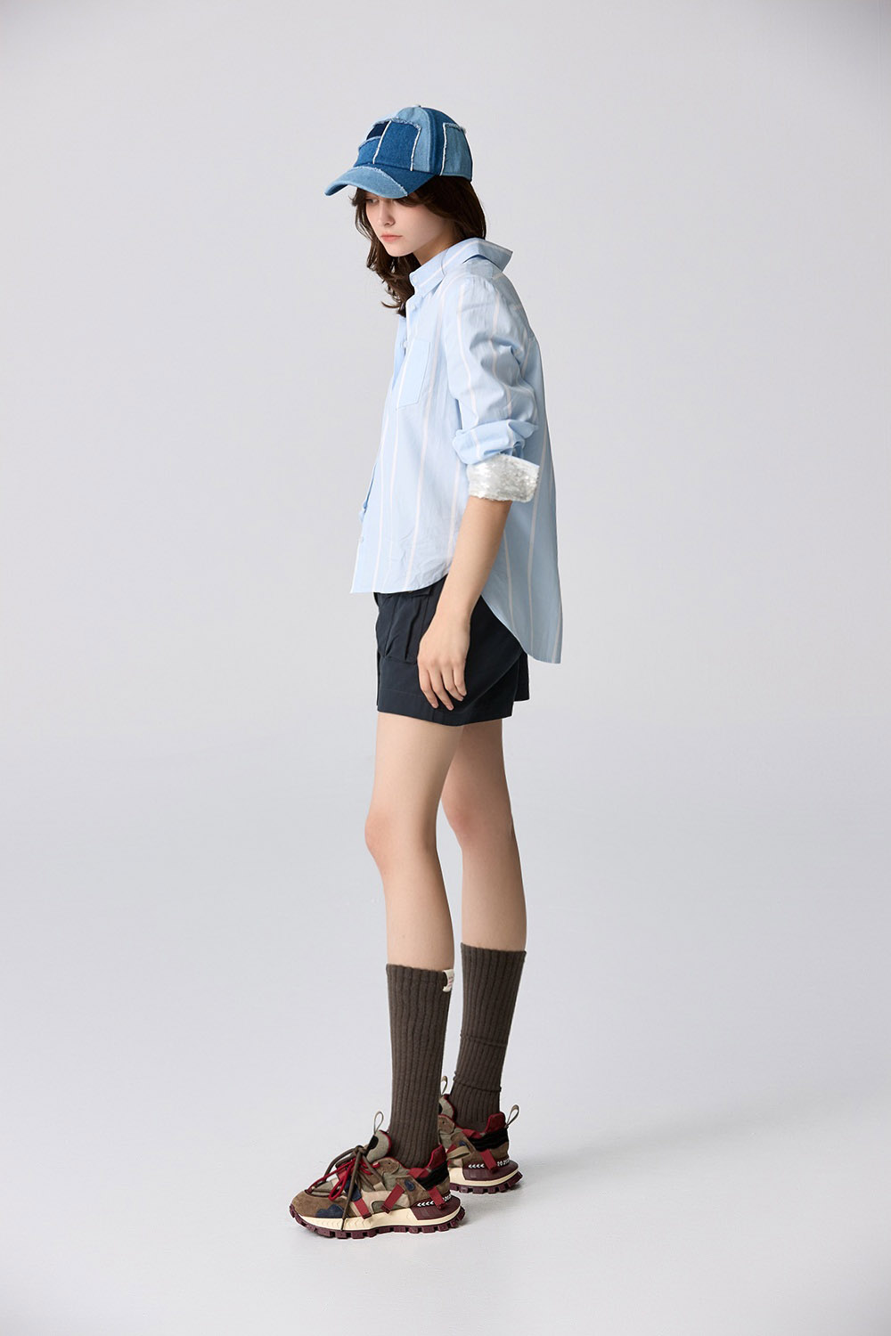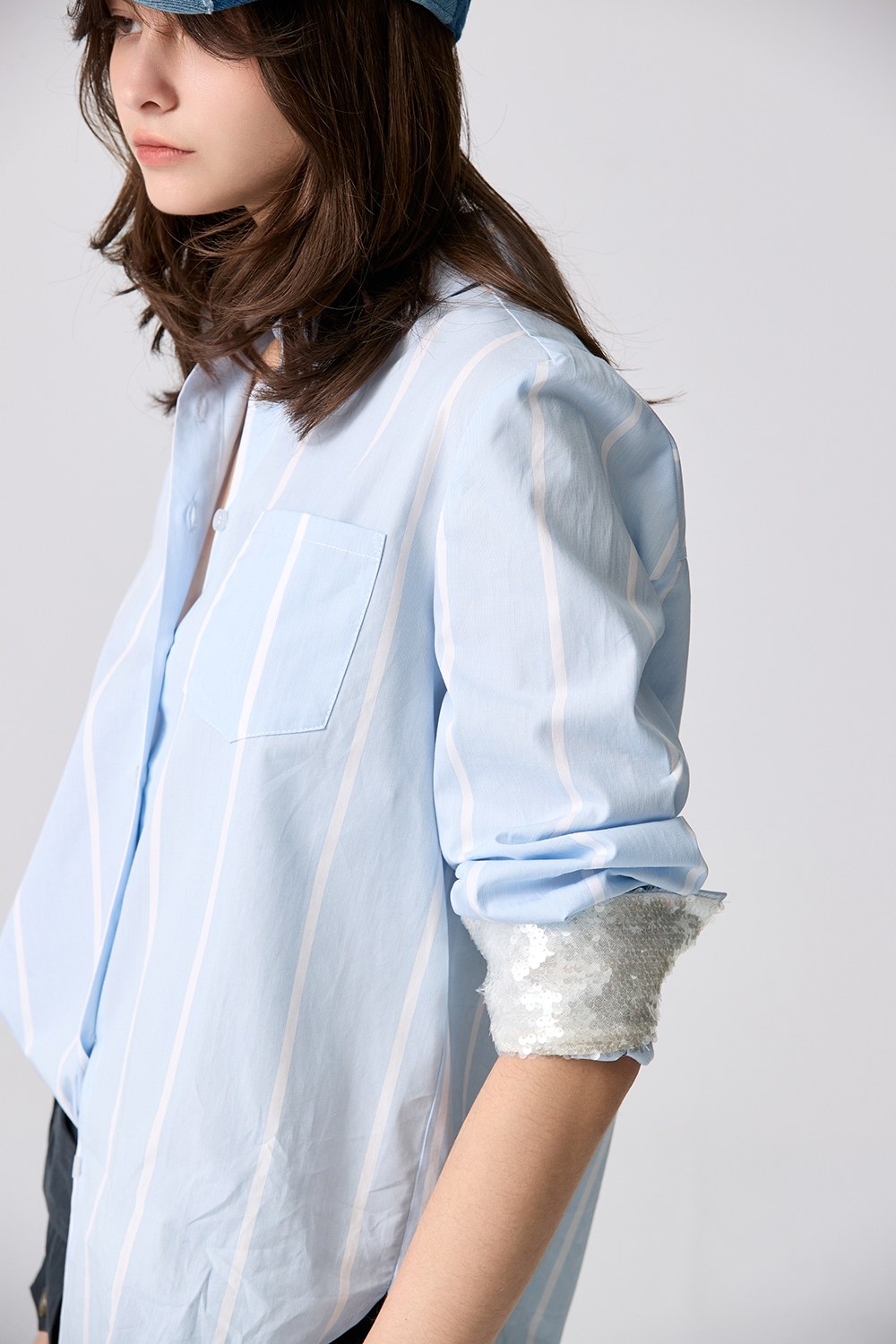 碧海藍天袖口亮片襯衫 - 寧靜黛藍, 36