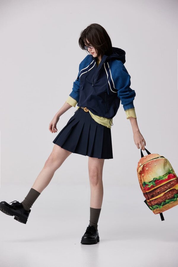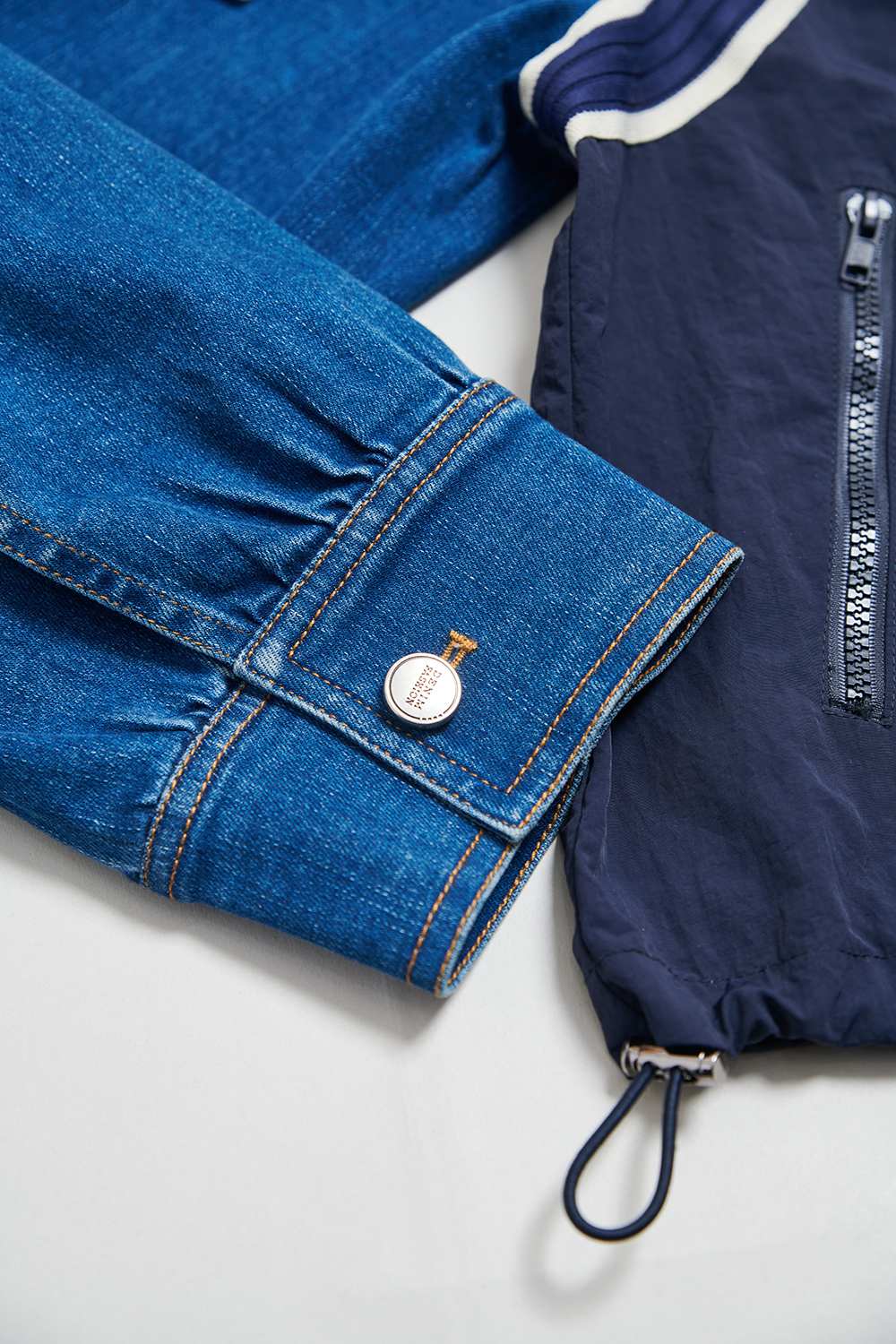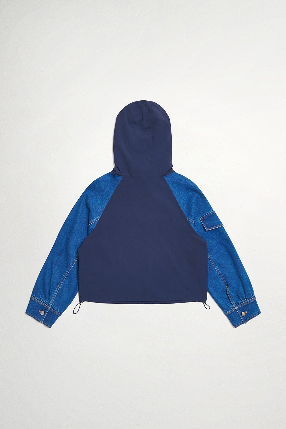 靛藍潮流異材質拼接連帽外套 - 深邃藏藍, 36
