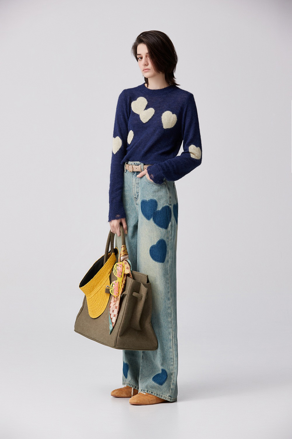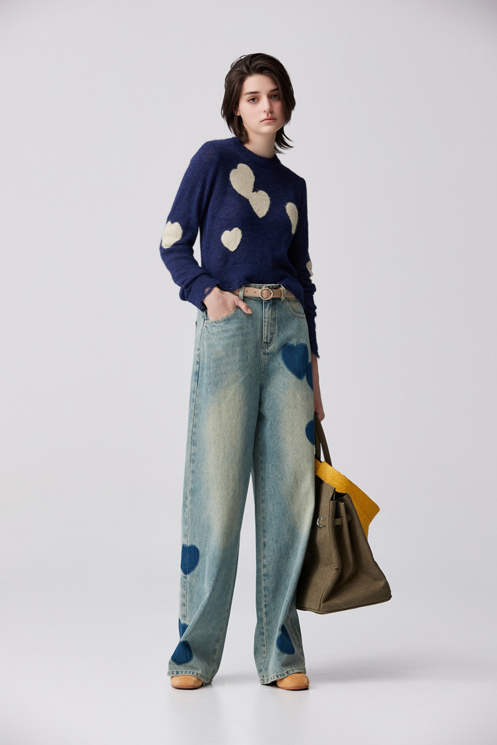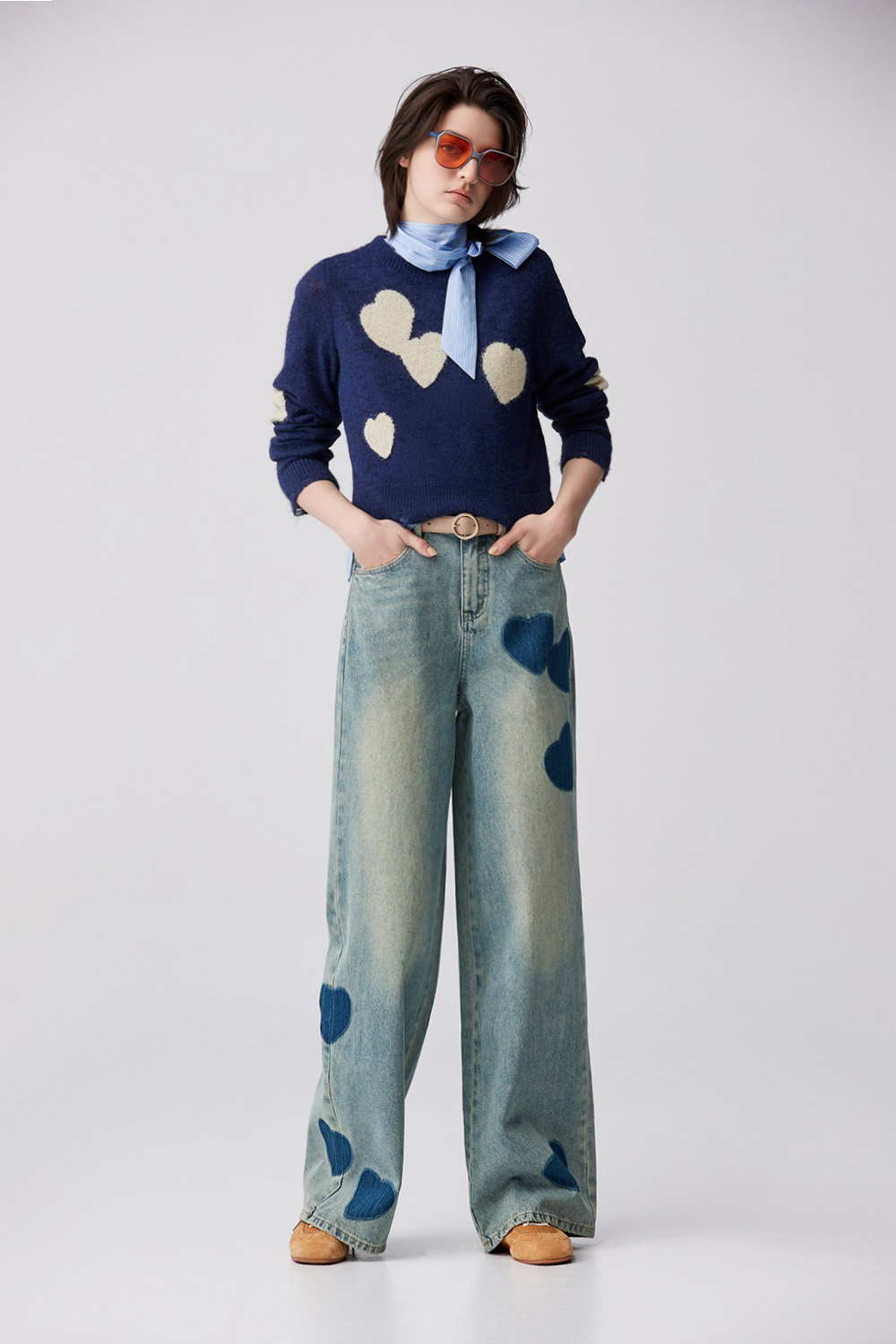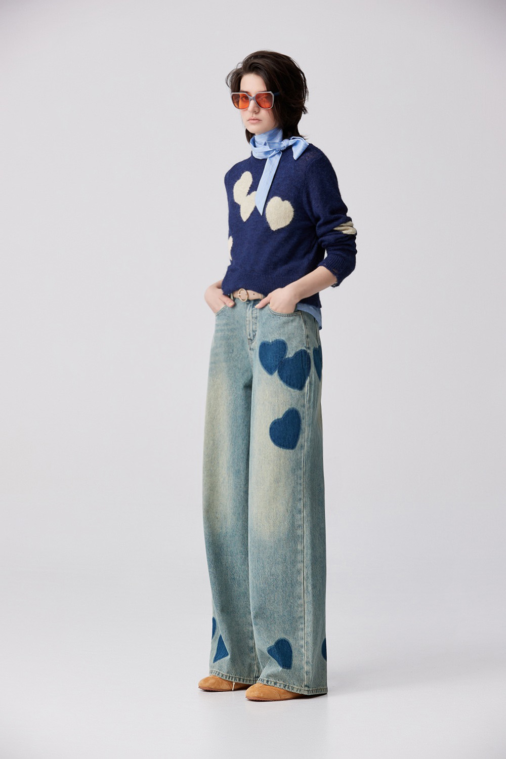 法式風情愛心牛仔寬褲 - 寧靜黛藍, 38