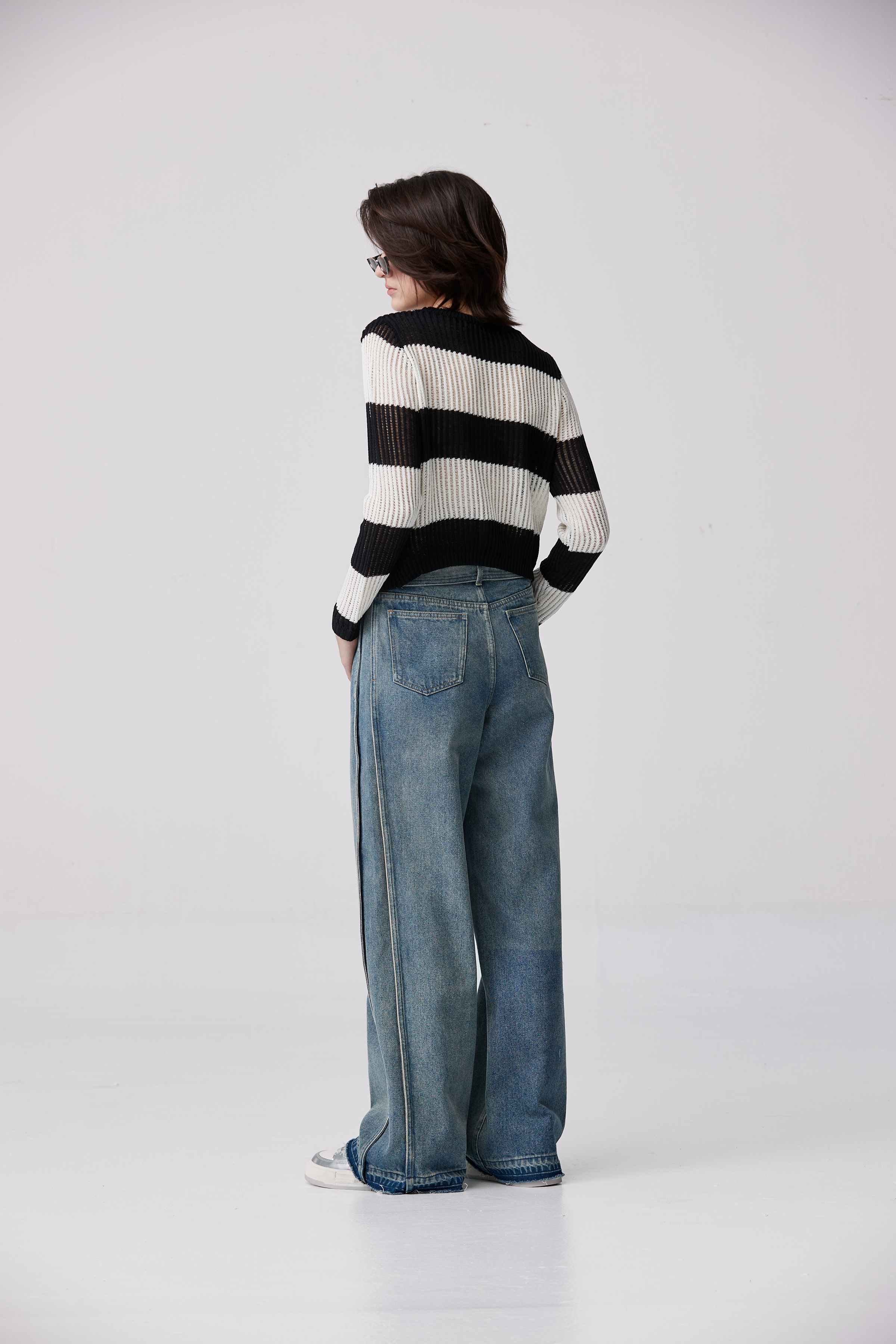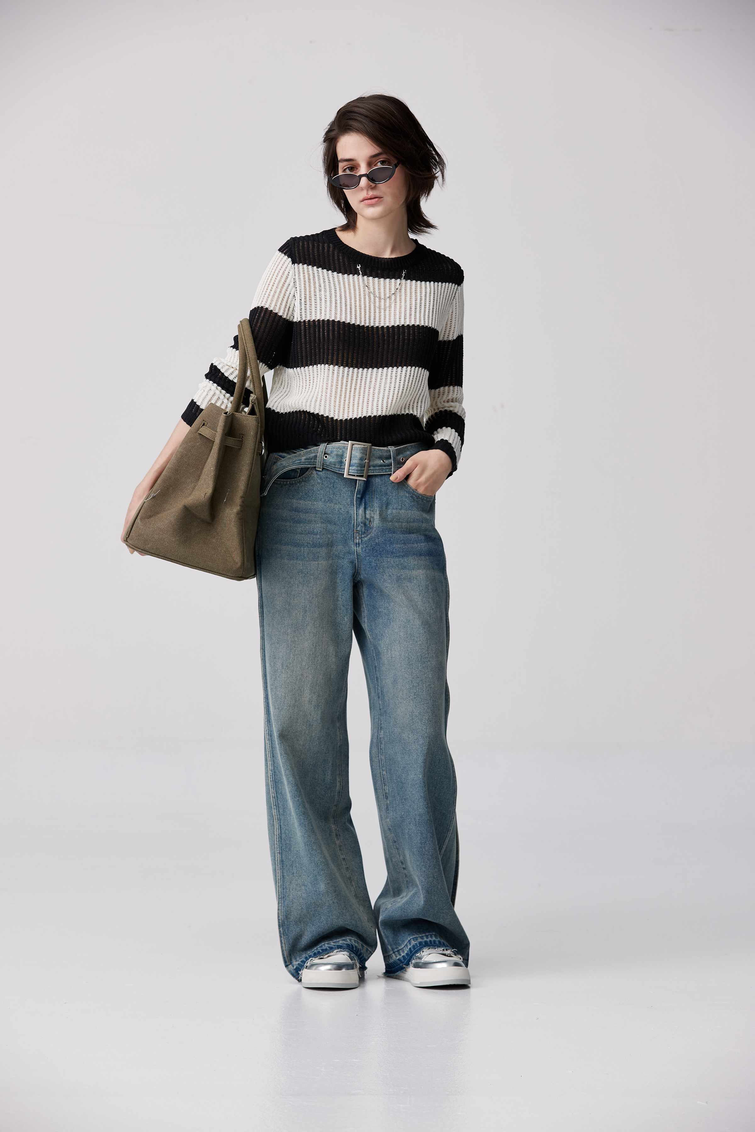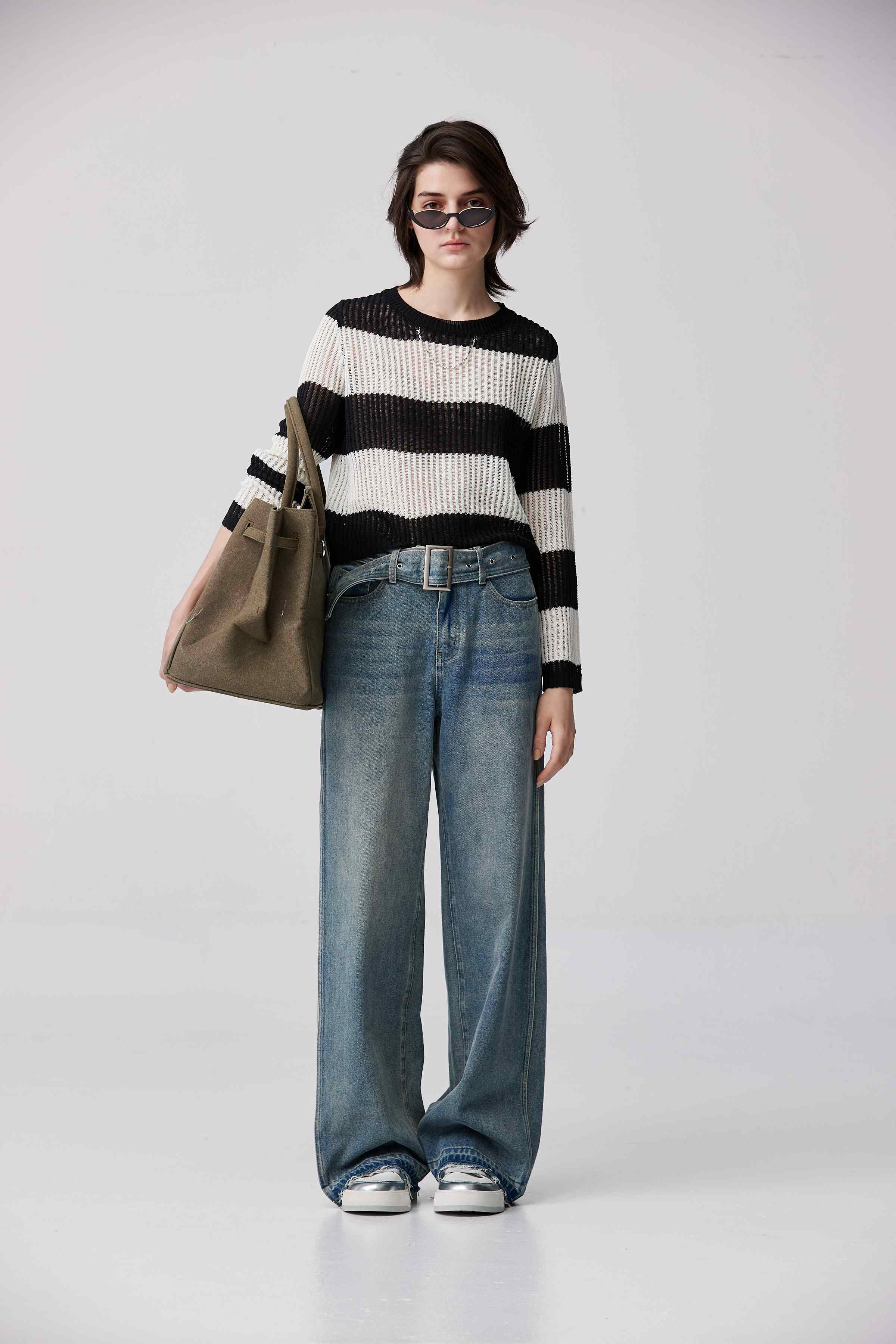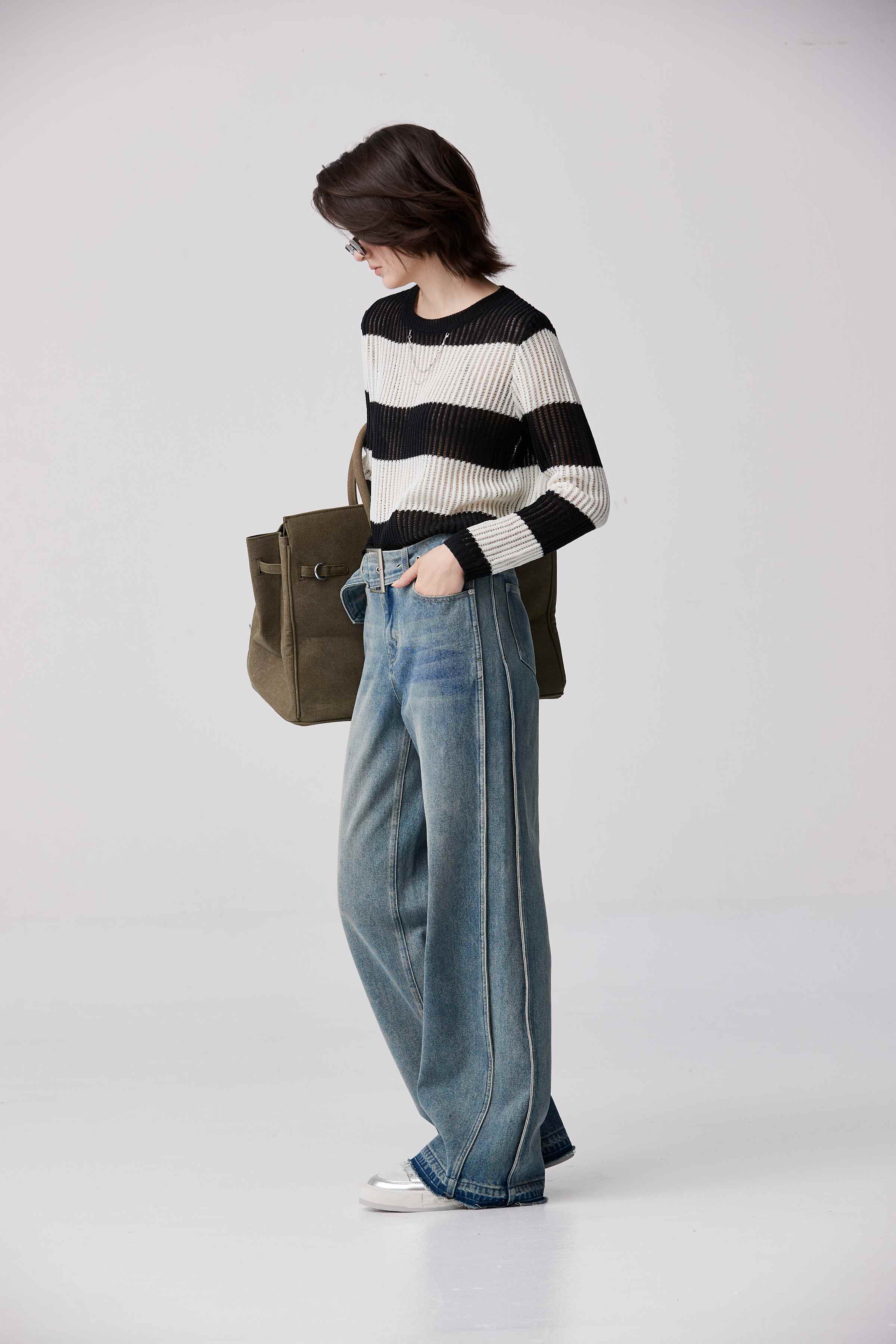 黑白配條紋針織上衣 - 黑白條紋, 38