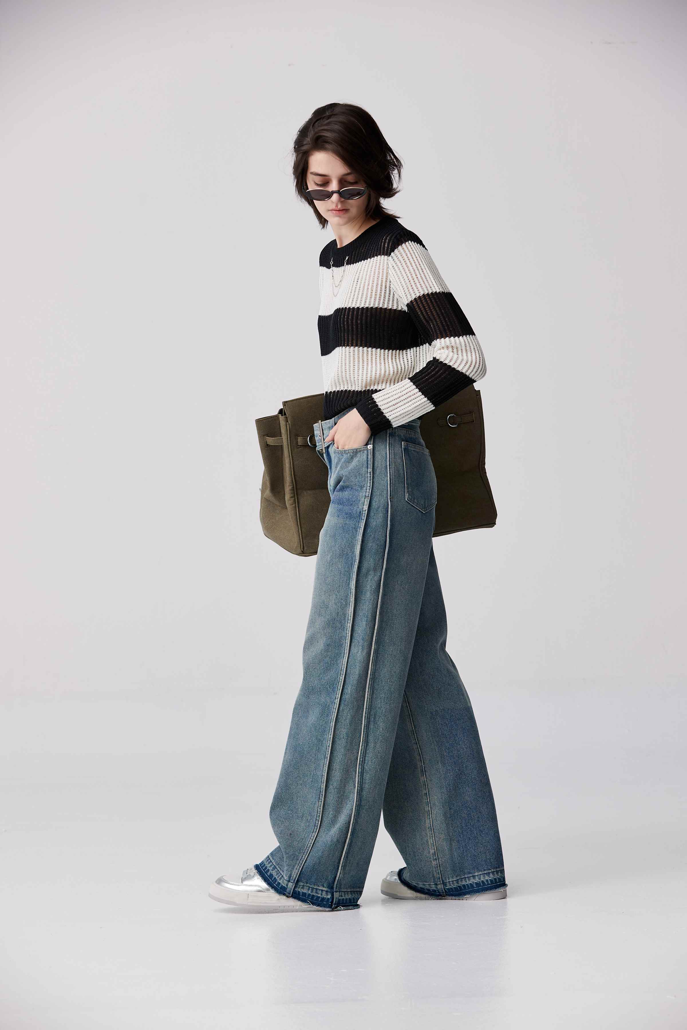 這件黑白針織上衣穿起來不顯胖 很好搭好穿