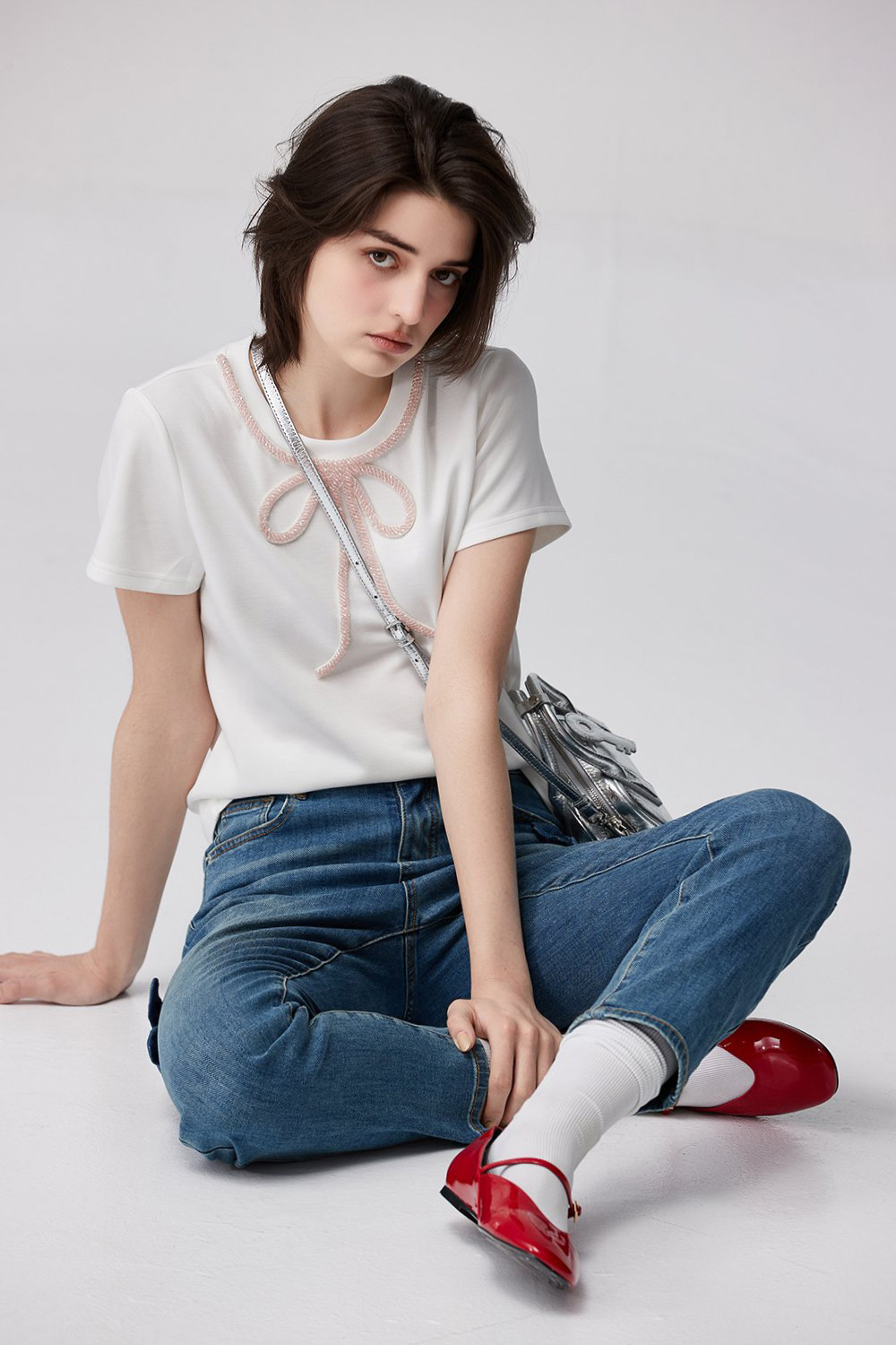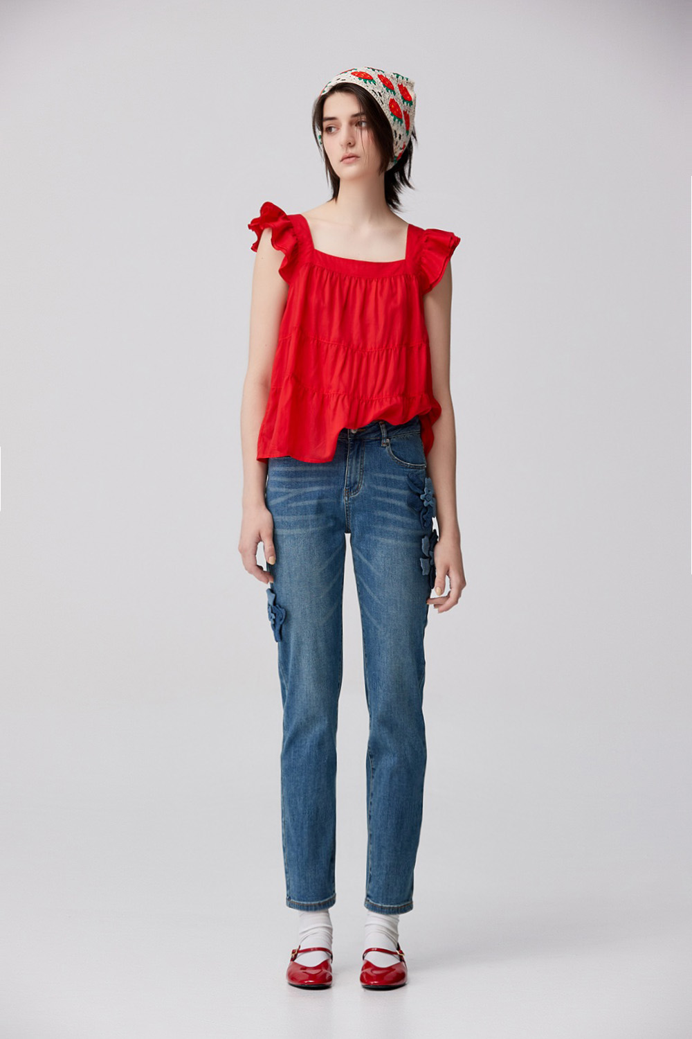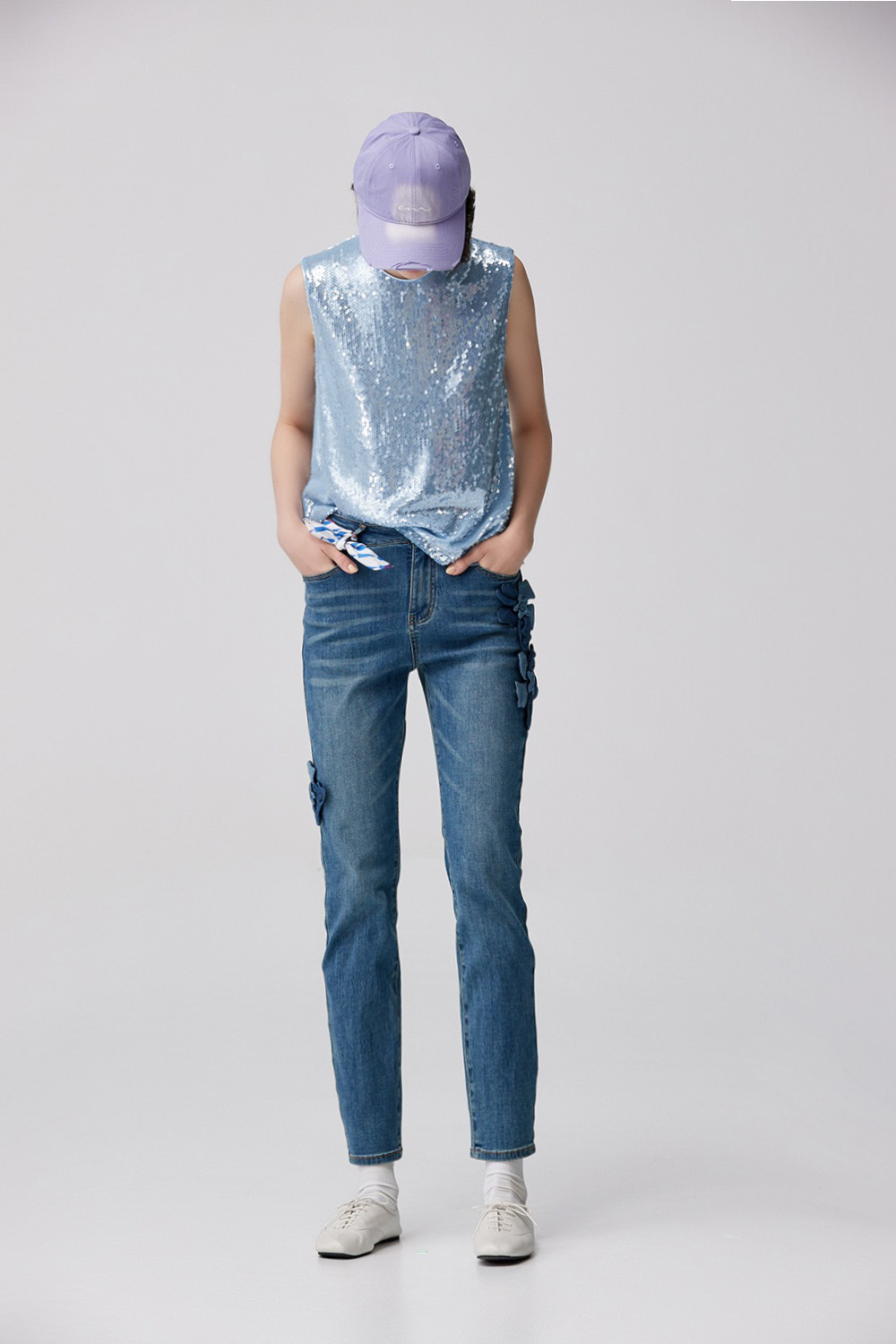 霧水藍調立體牛仔花牛仔褲 - 寧靜黛藍, 38