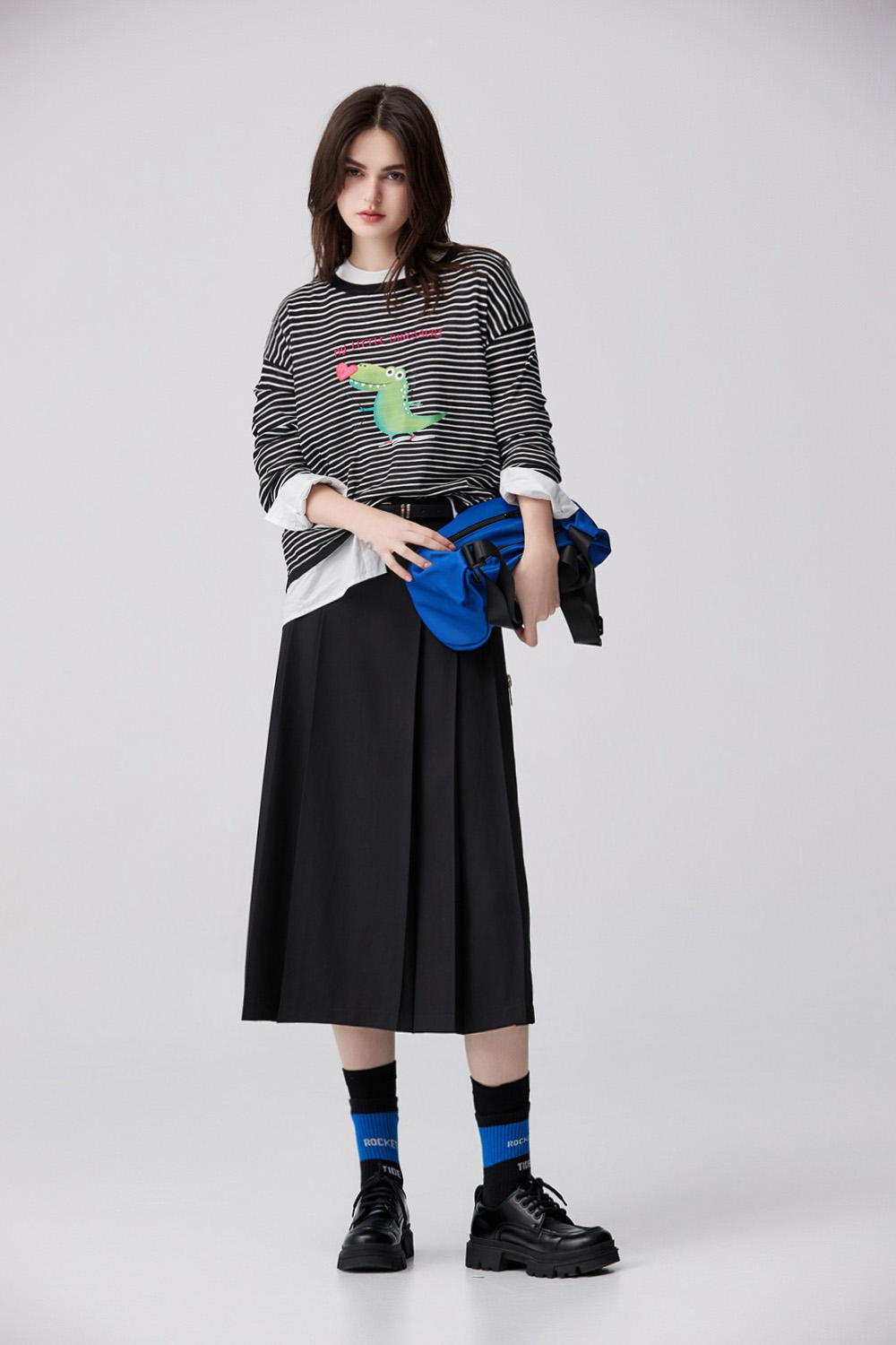 黑色秘境側邊百褶雙頭拉鍊長裙 - 神祕純黑, 40