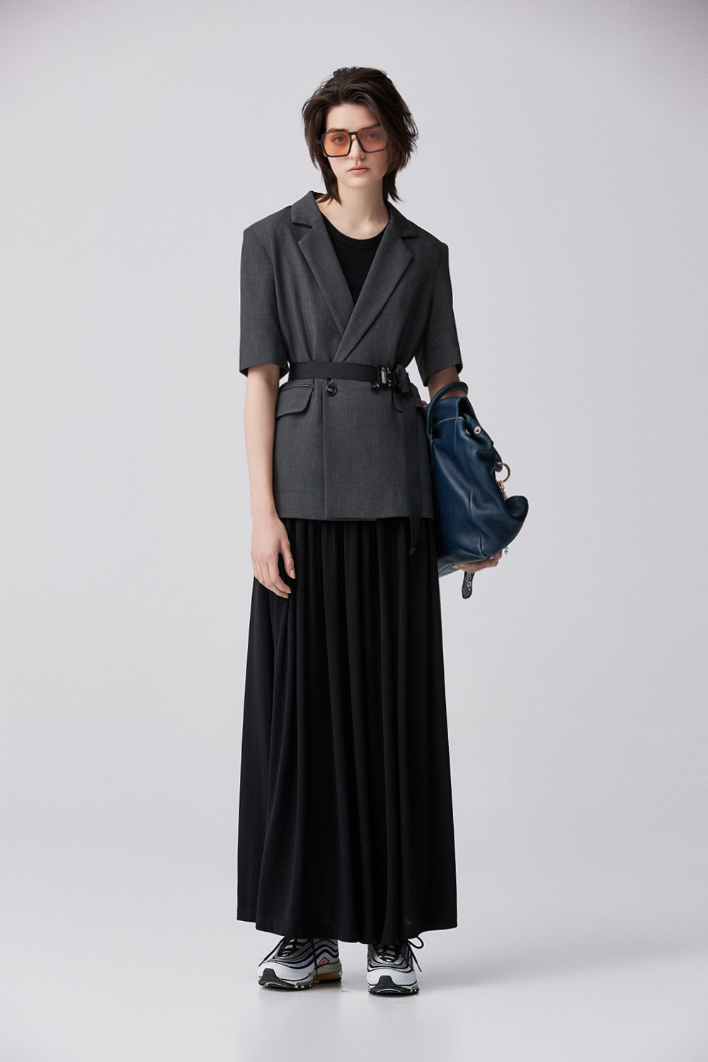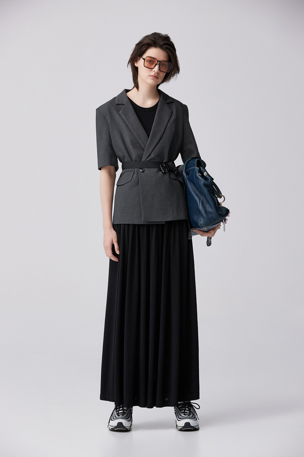 黑色貴氣質感短袖西裝外套 - 沉穩霧灰, 38
