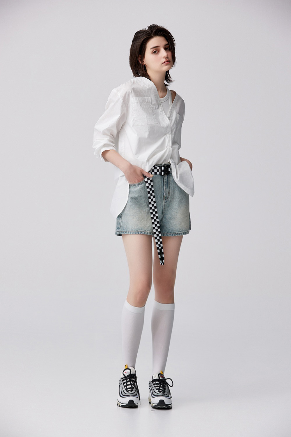 極致白色V領雙口袋襯衫 - 無瑕純白, 36