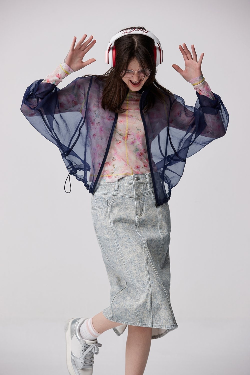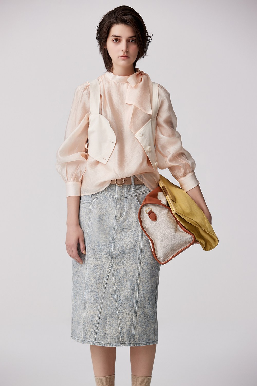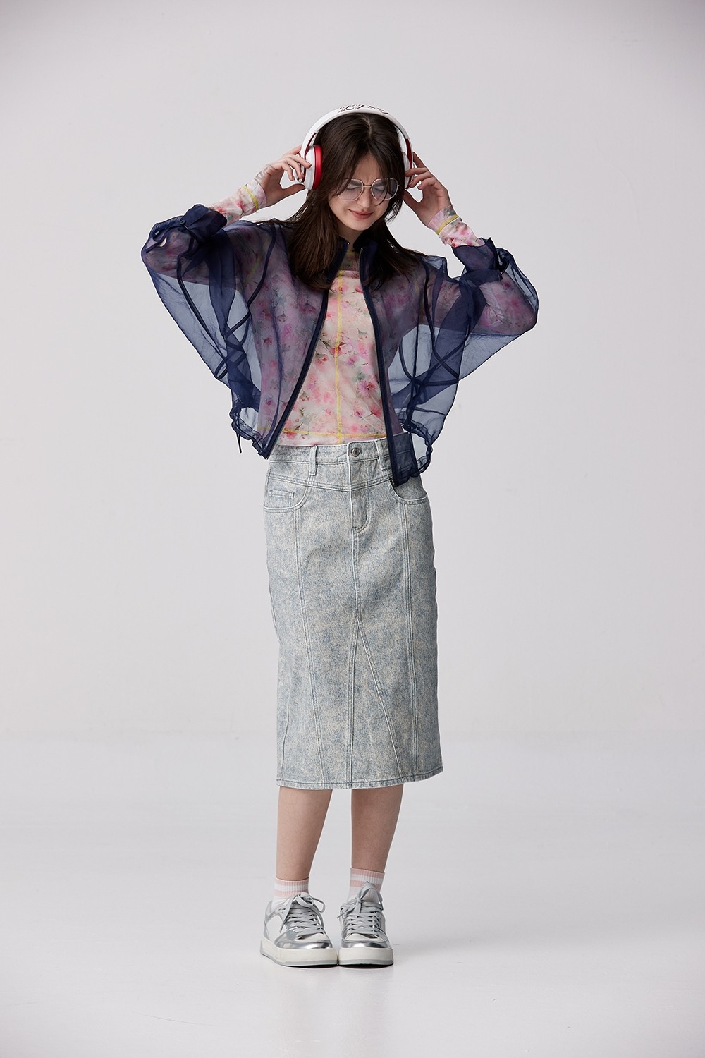 仙霧淡藍特殊剪接中長裙 - 寧靜黛藍, 40