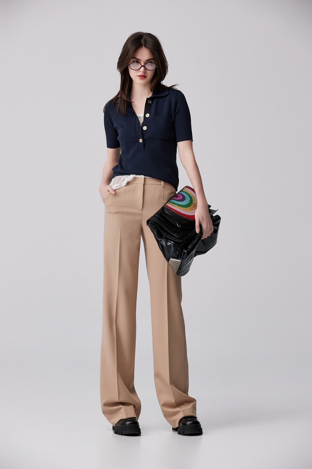 月光童話半開襟POLO領針織上衣 - 深邃藏藍, 40
