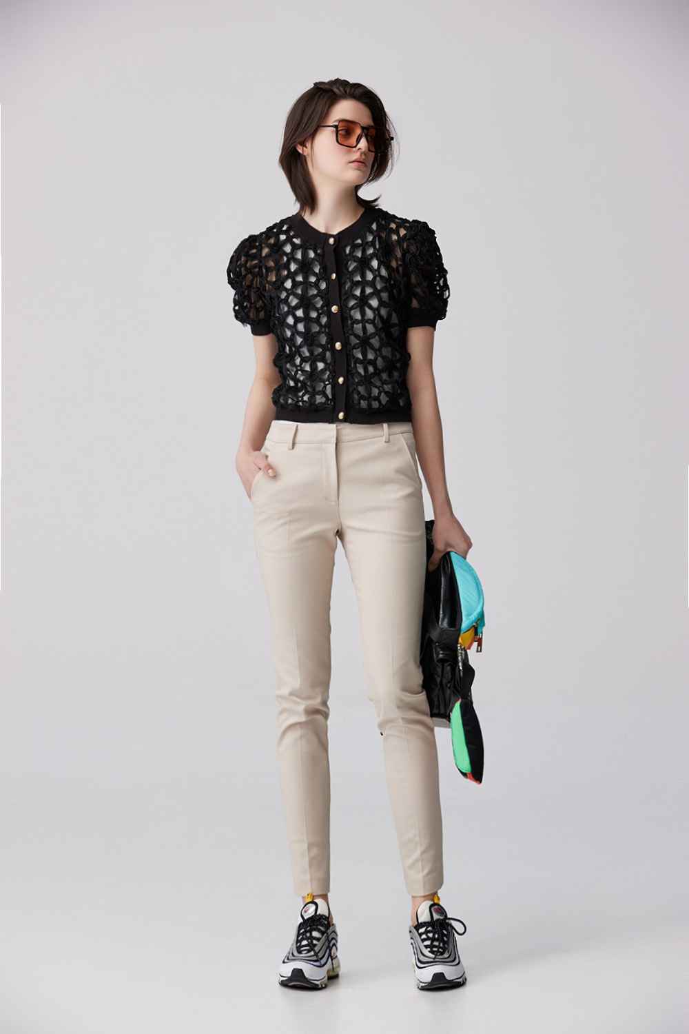 月下時光底網繡花外套 - 神祕純黑, 36