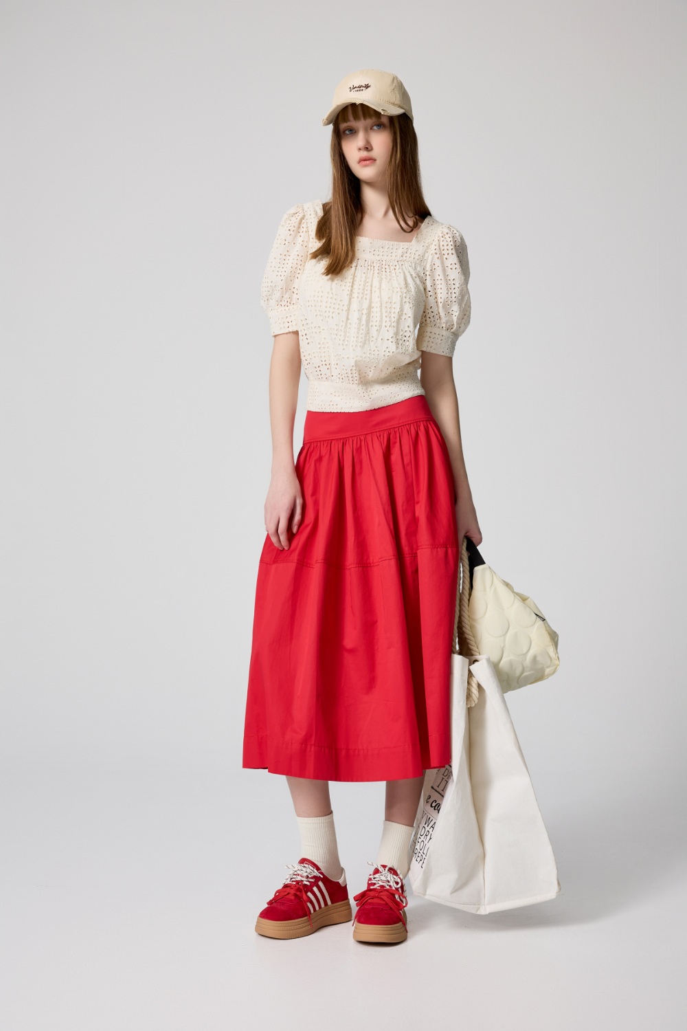 米杏花影繡花泡泡袖方領上衣 - 奶油杏色, 38