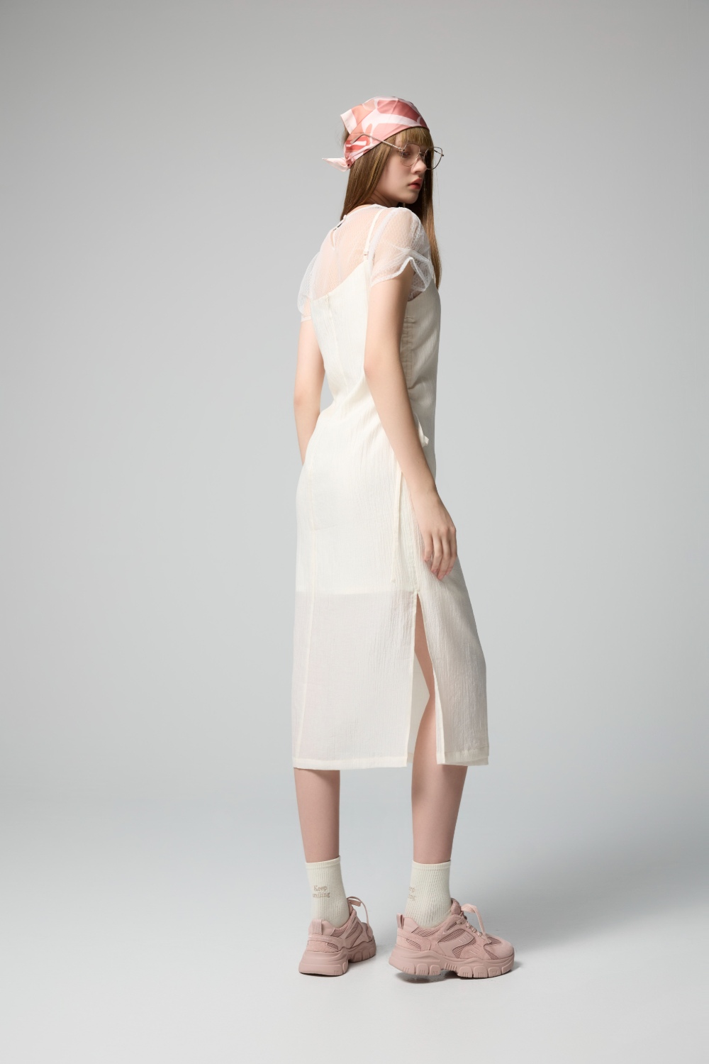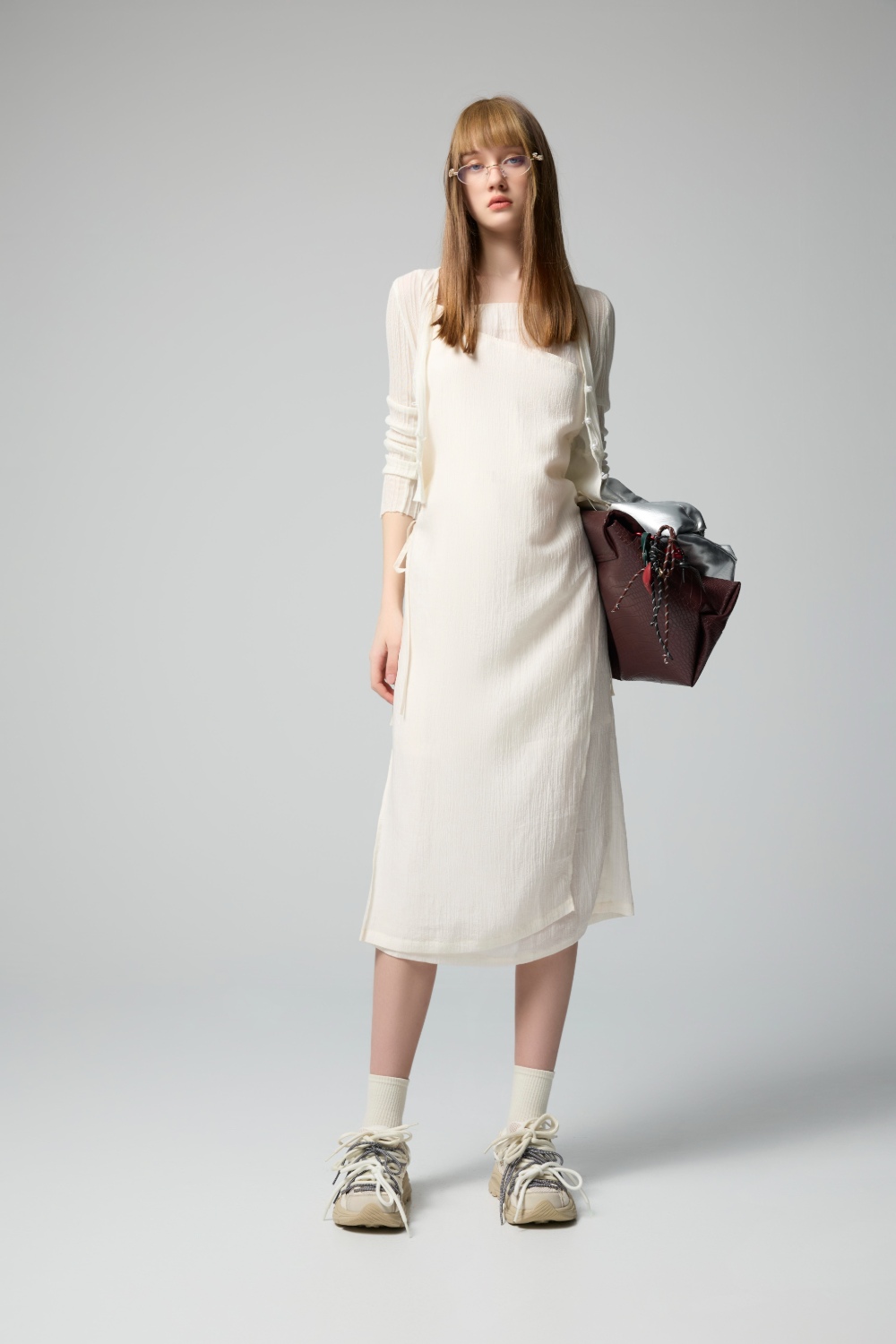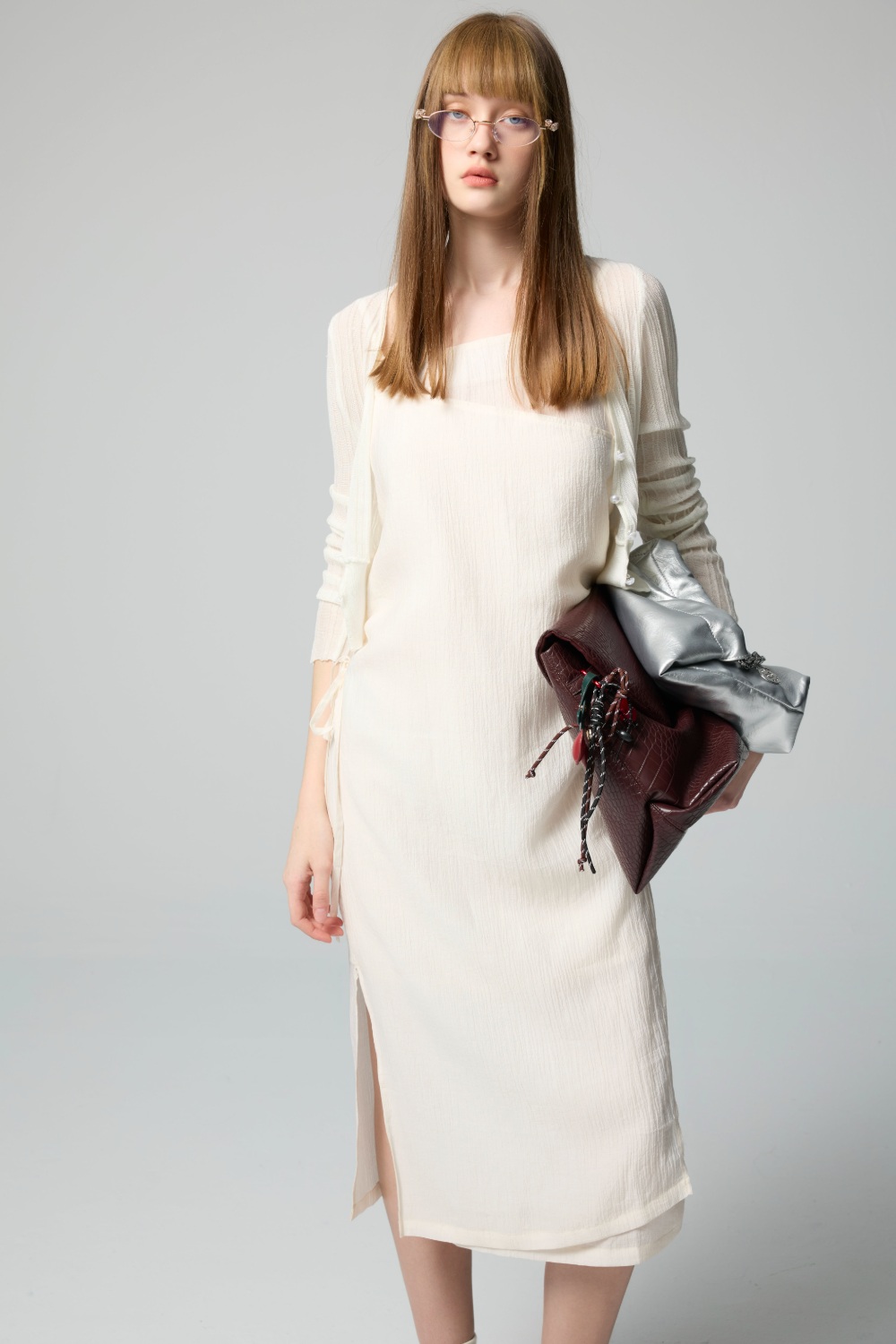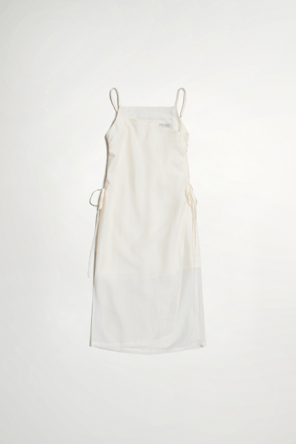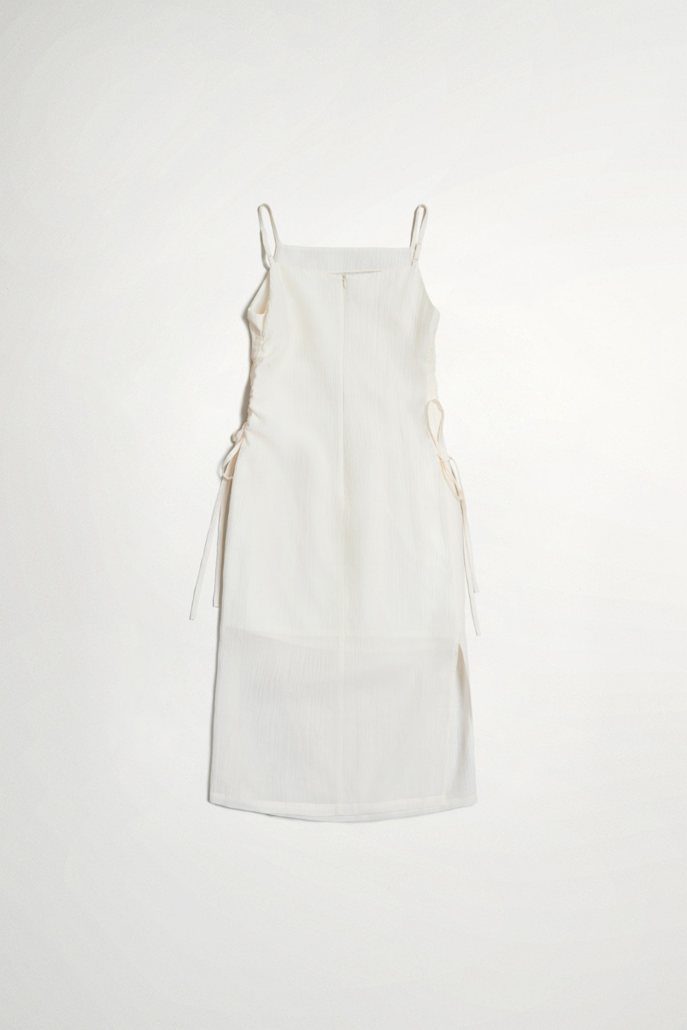 溫米細語皺皺質感抽繩吊帶連身裙 - 奶油杏色, 36