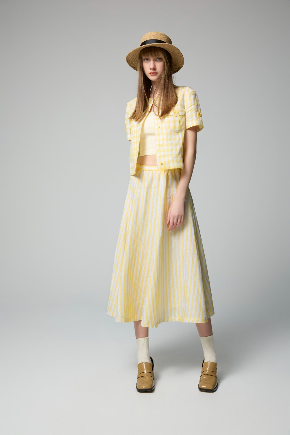 柔光暖意圓領開襟短袖上衣 - 金闕黄沉沉, 38