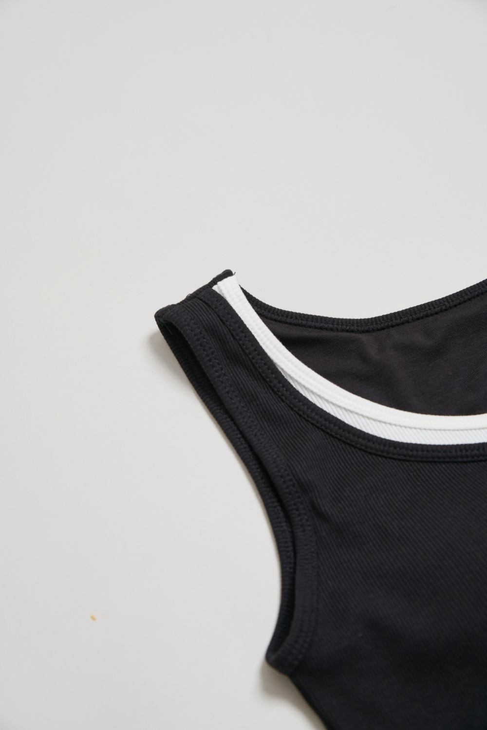 簡約假兩件罩杯式背心 - 神祕純黑, F