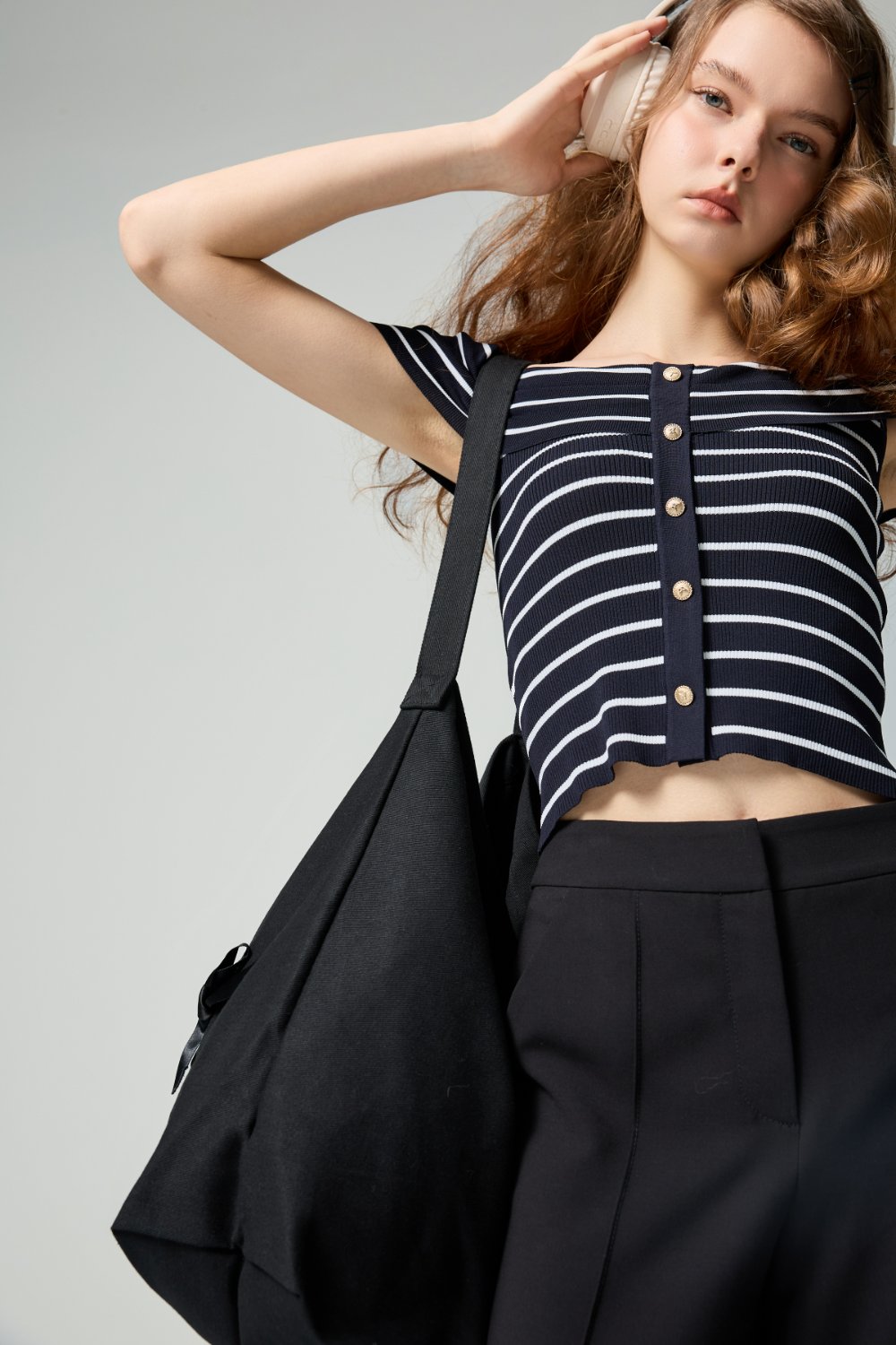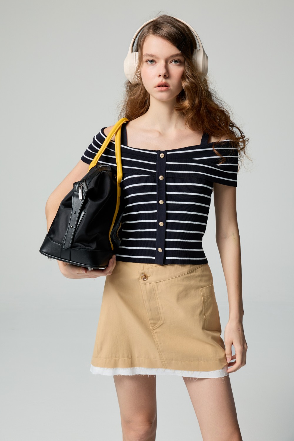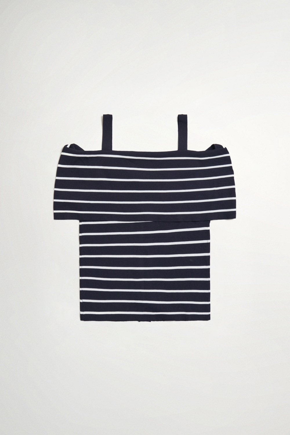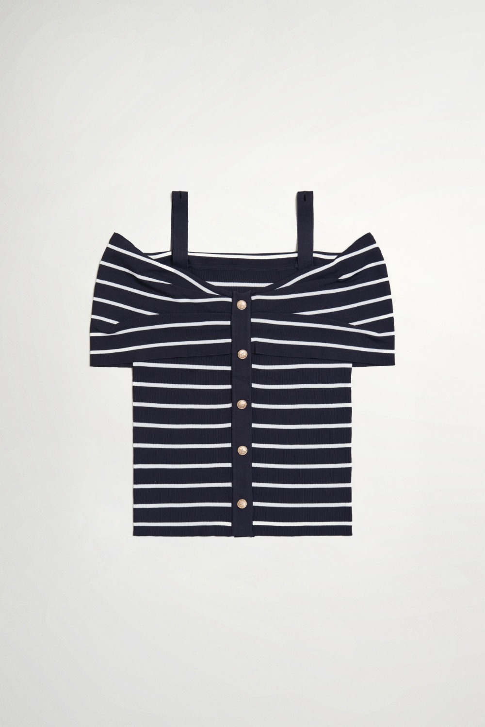 藍影重重兩穿式條紋針織上衣 - 深邃藏藍, 38