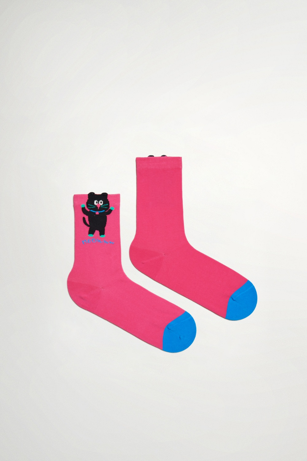 / 頑俏撞色貓咪中筒襪