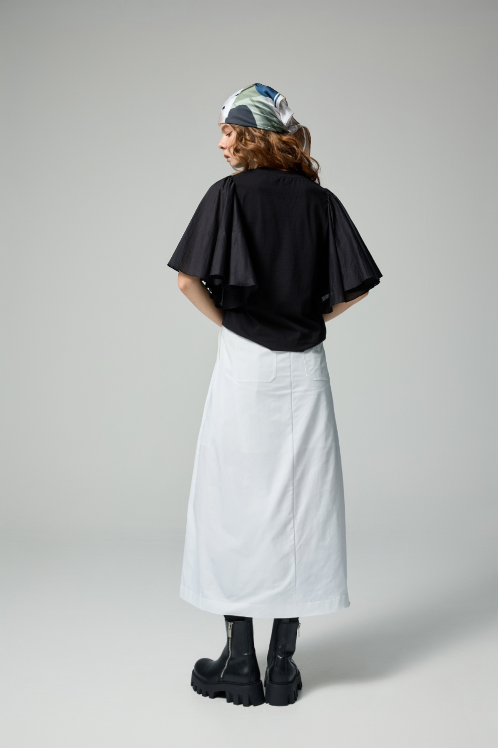 深黑魅惑飄逸層次袖上衣 - 神祕純黑, 36