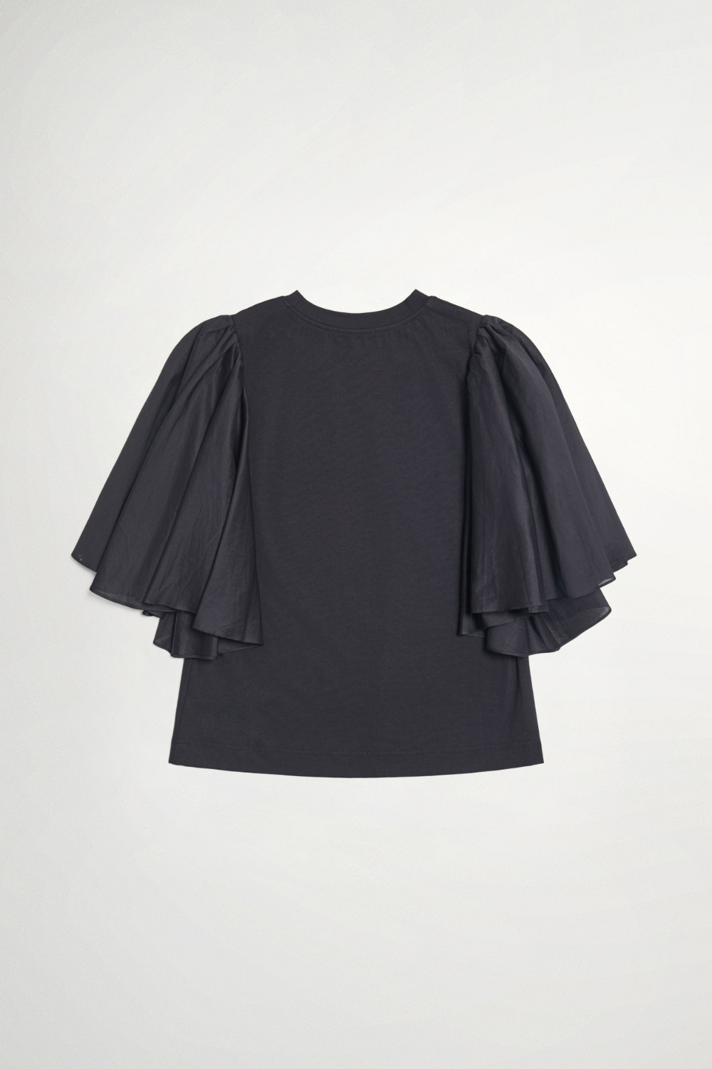 深黑魅惑飄逸層次袖上衣 - 神祕純黑, 38
