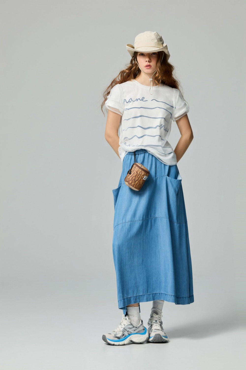 夢幻藍韻剪接雙口袋牛仔裙 - 清新蔚藍, 38
