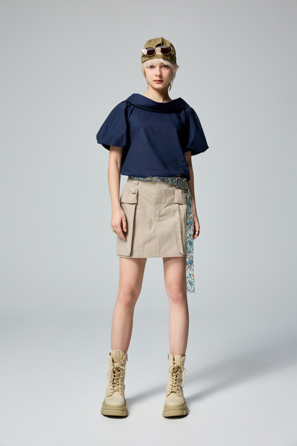 摩登靛影造型領短袖上衣 - 深邃藏藍, 38