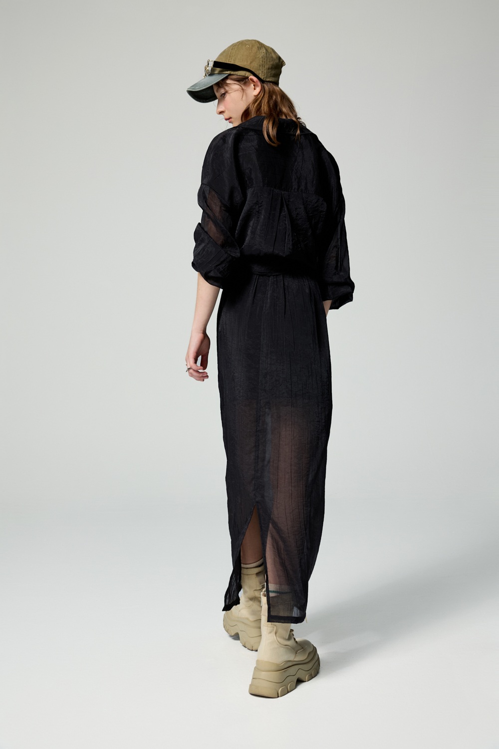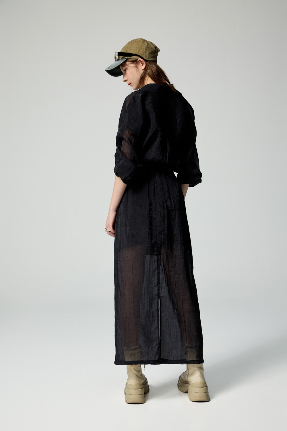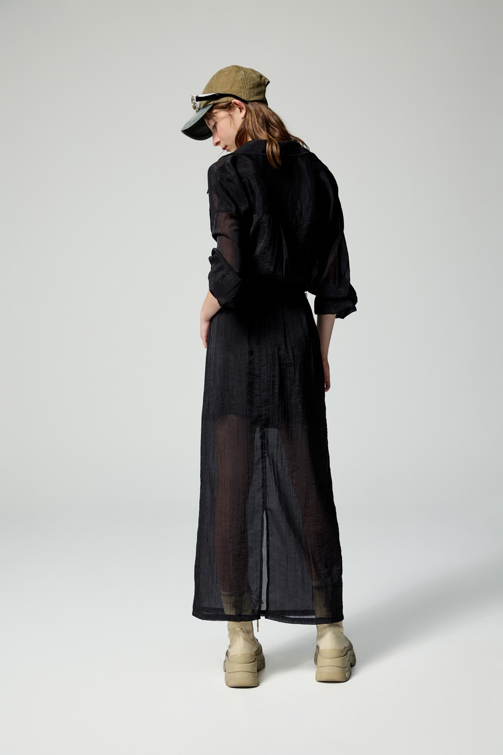 黑調極簡透膚感紋理長裙 - 神祕純黑, 40