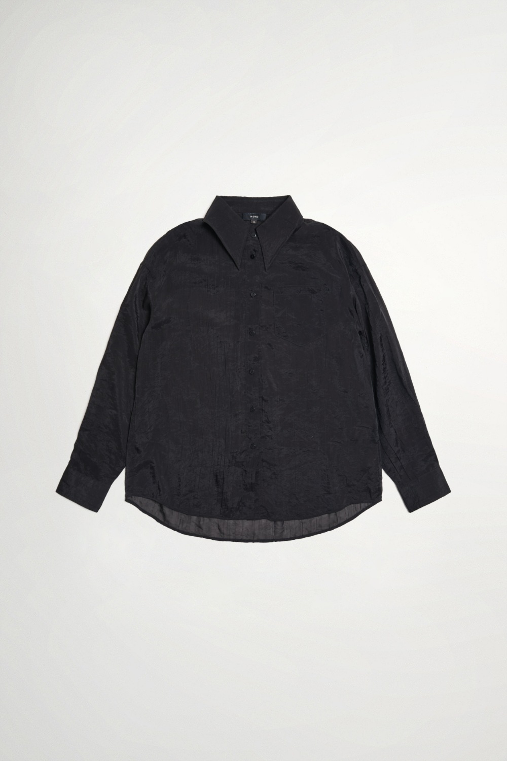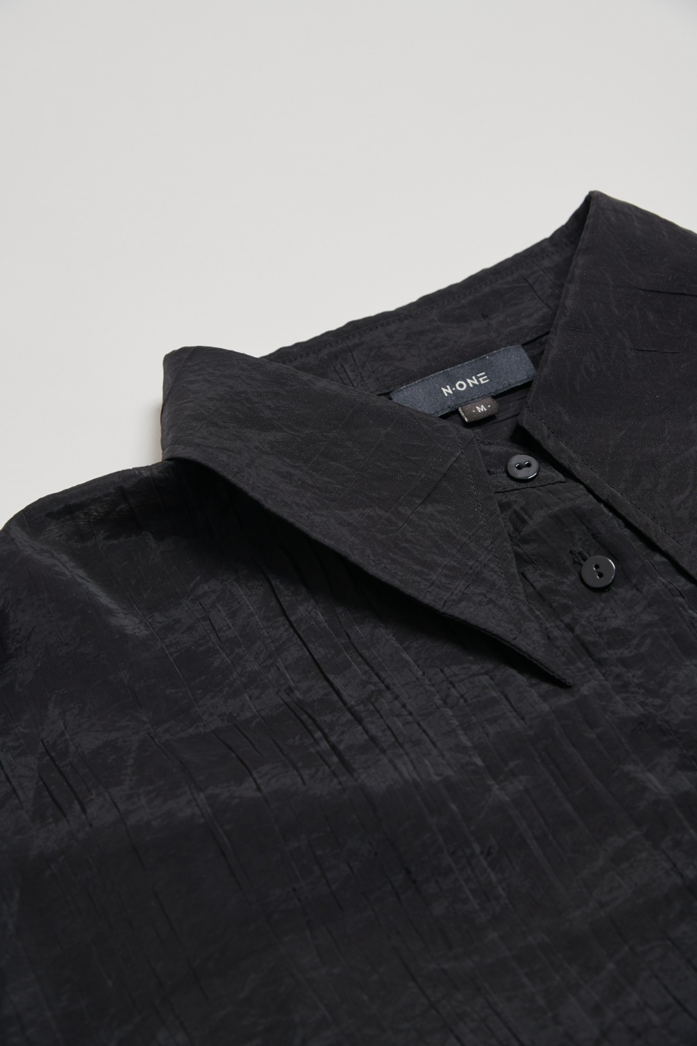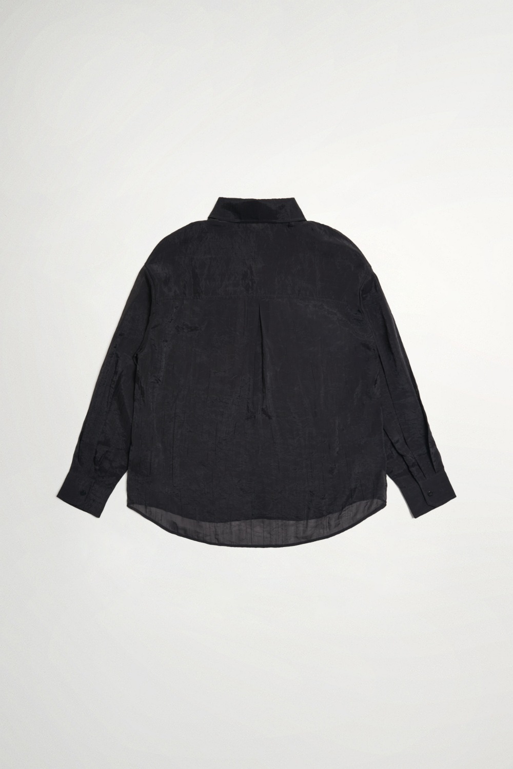 冷黑女王透膚感紋理襯衫 - 神祕純黑, 38