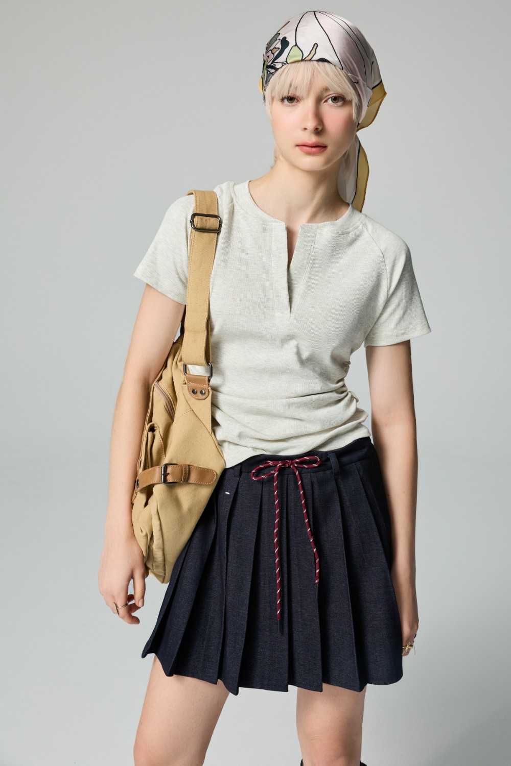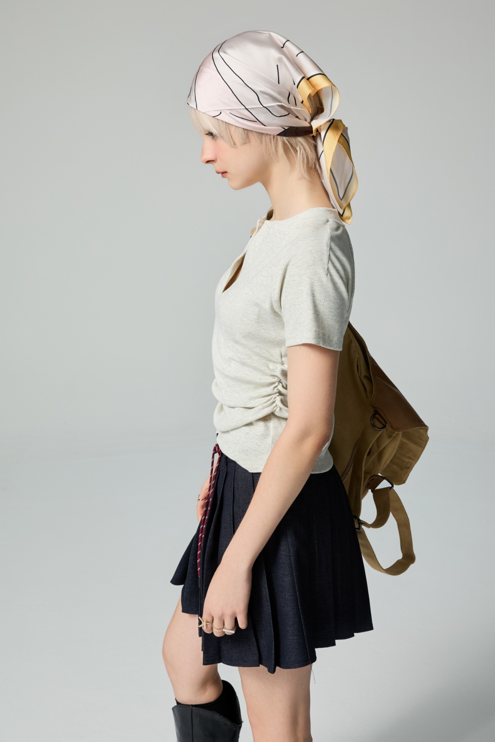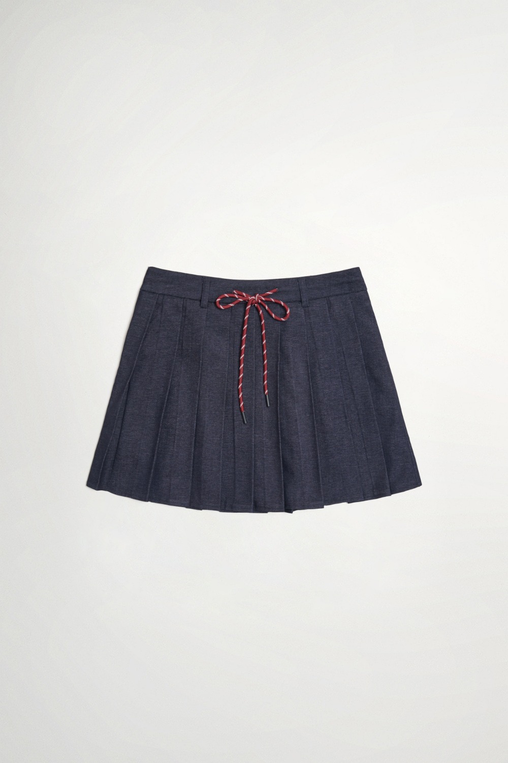城市藍調抽繩百褶短裙 - 深邃藏藍, 40
